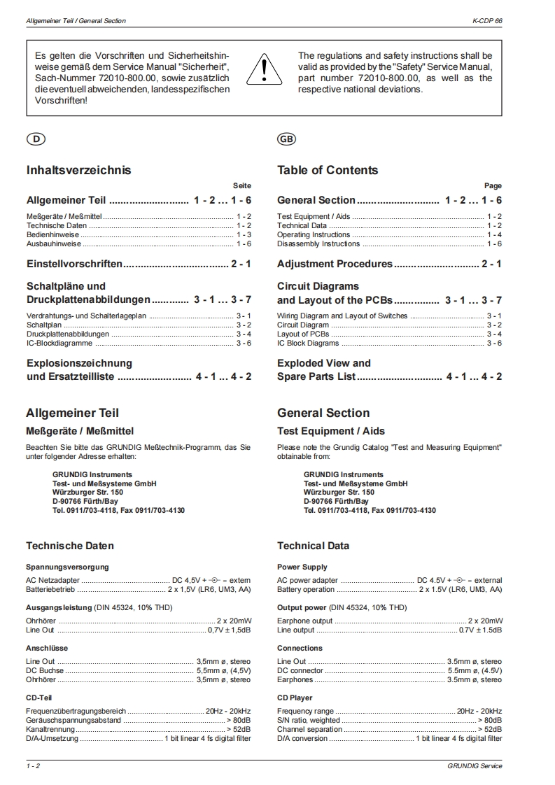 GRUnDGService ManualAudioK-CDP 66酒SKP-SEARCZusa tzlich erforderl icheAdditionally requiredService Manuals for the Complele ServiceBtw*32700#ServiceServiceManualManualSachnummePart Number 72010-755.05K-CDP 66SicherheitAnderungen vorbehaltenSafetySubject to alterationSachNr/Pat NoSach-Nr/PartNoPrinted in Germany720107550572010800.00VK2310797
