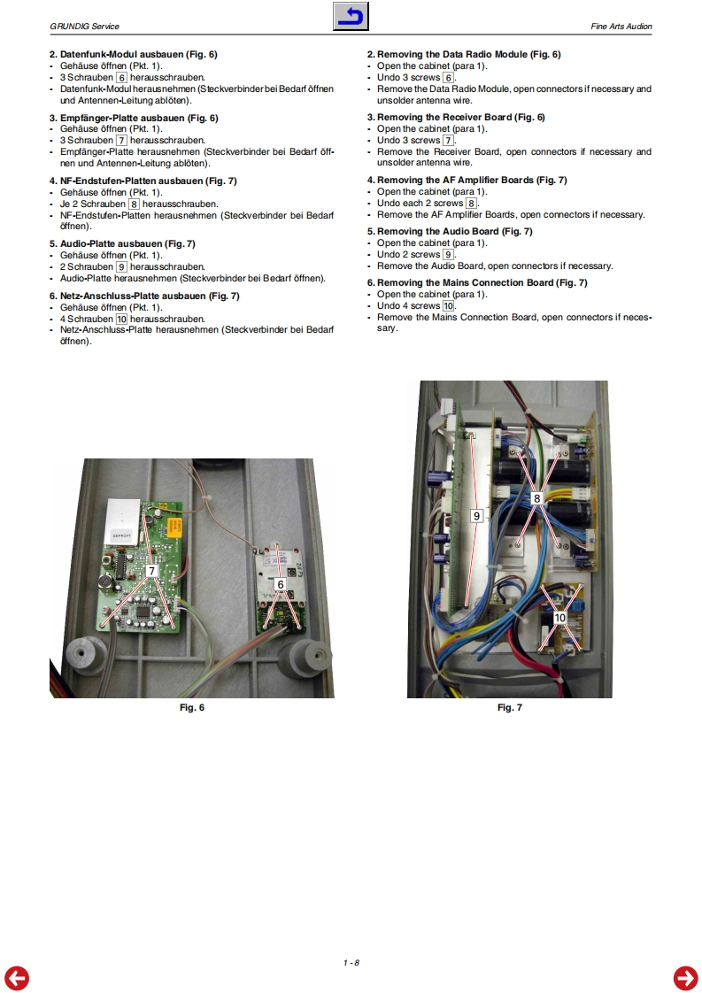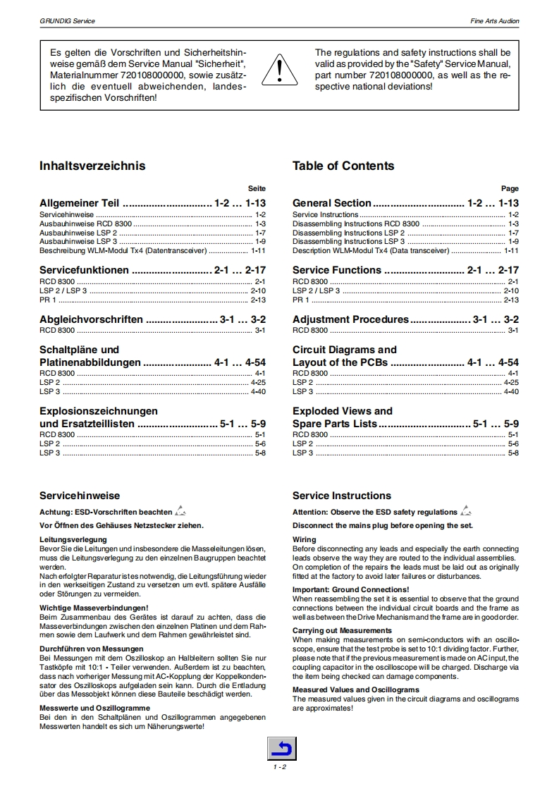 GRUDDGHifiService Manual(Reparatur Repair)Fine Arts AudionRCD 8300GLK0650LSP 2GNK0752LSP 3GNK0852NUR FUR INTERNEN GEBRAUCHFOR INTERNAL USE ONLYGrundig ServiceHotfne Deutschland..Mo Fr.8.00.18.00 UhrToch nik:v0180/5231841+V0180/5231849SAT0180/5231848¥VCR/LiveCam0180/5231842+HiFi/Audio0180/5231843Car Audio0180/5231844*Telekommunikation0180/5231845$Addifionally required Service Documents for the Complele ServiceFax:0180/5231851*Planatron8.0a2200hm0180/5231899*ServiceErsatzteilVerkouf.Mo.Fr.8.00-19.00 UhrTelefon:0180/52318-40*SicherheitFax:0180/52318-504SafetyKundendienst/Werkstatten:Mo Fr.8.00-18.00 UhrTelefon:0180/52318-52Fax:0180/52318-46**0,12E/Min.uber ArcorDieses Service Manual ist nur in Datenform verfugbar This Service Manual is only available as dataAnderungen vorbehalten Subject to alterationMade by GRUNDIG in Germany.http://www.grundig.comH-542·0403·720107726000