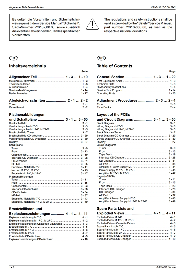 GRUnDGService ManualHiFiM7-CM17-CM27-C②©零日兰习Zusa tzlich er forderl icheAdditionally requiredService Manuals for the Complele ServiceBtw*32700#ServiceServiceManualManualSachnummePart Number 72010-752.25M7-.CM17-CSicherheitAnderungen vorbehaltenM27-CSafetySubject to alterationachNr/Part NoacNr/Part NoPrinted in Germany720107522572010800.00VK2330297