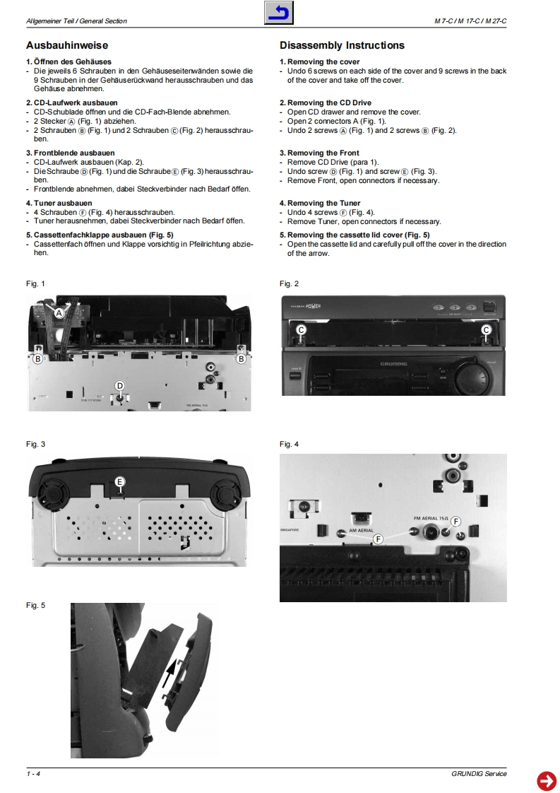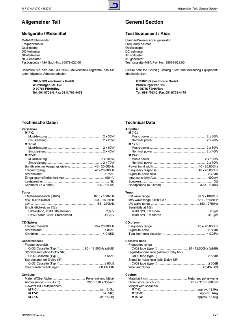 GRUnDGService ManualHiFiM7-CM17-CM27-C②©零日兰习Zusa tzlich er forderl icheAdditionally requiredService Manuals for the Complele ServiceBtw*32700#ServiceServiceManualManualSachnummePart Number 72010-752.25M7-.CM17-CSicherheitAnderungen vorbehaltenM27-CSafetySubject to alterationachNr/Part NoacNr/Part NoPrinted in Germany720107522572010800.00VK2330297