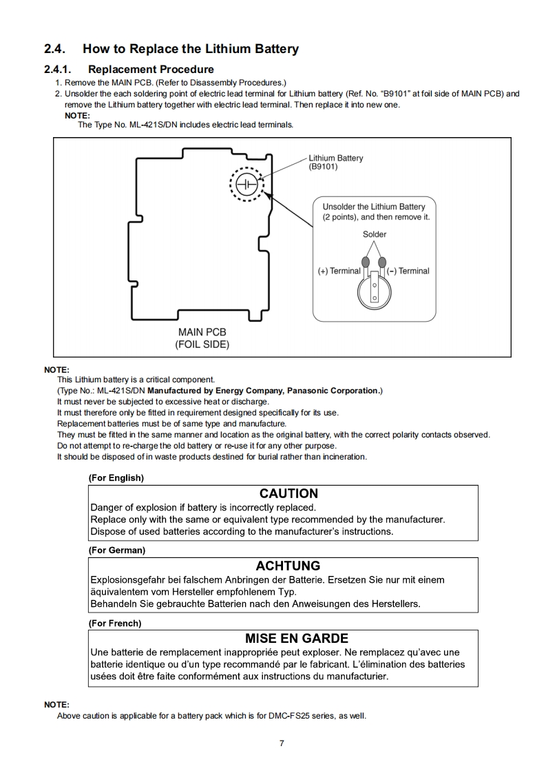 ORDER NO.DSC0902009CEB26Service ManualDigital CameraLUMIXModoI No.DMC-FS25P52白DMC-FS25PCDMC-FS25PUDMC-FS25EBDMC-FS25EEDMC-FS25EFDMC-FS25EGDMC-FS25EPDMC-FS25GCDMC-FS25GDDMC-FS25GKDMC-FS25GTVol.1Colour(S)...........Silver Type (except PC/PU/EF/GD/GT)(K0....Black Type(except PU)(N)...........Gold Type (except EB/EF/EG/EP/GD)AWARNINGThis service information is designed for experienced repair technicians only and is not designed for use by the general public.It does not contain warnings or cautions to advise non-technical individuals of potential dangers in attempting to service a product.Products powered by electricity should be serviced or repaired only by experienced professional technicians.Any attempt to serviceor repair the product or products dealt with in this service information by anyone else could result in serious injury or deathPanasonic Corporation 2009.Unauthorized copy-Panasonicing and distribution is a violation of law.