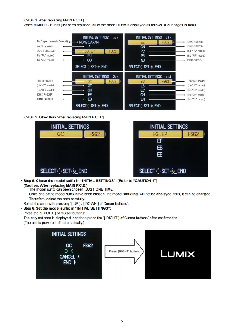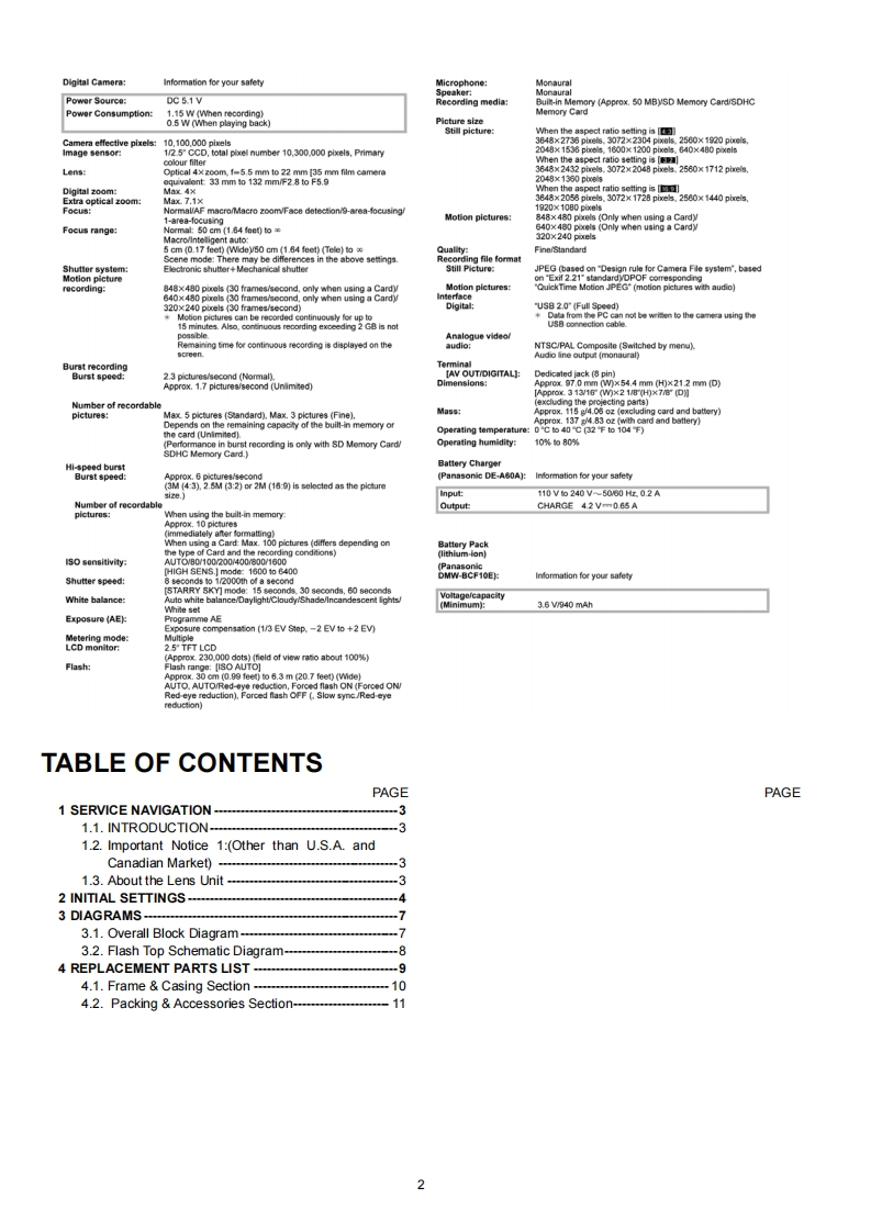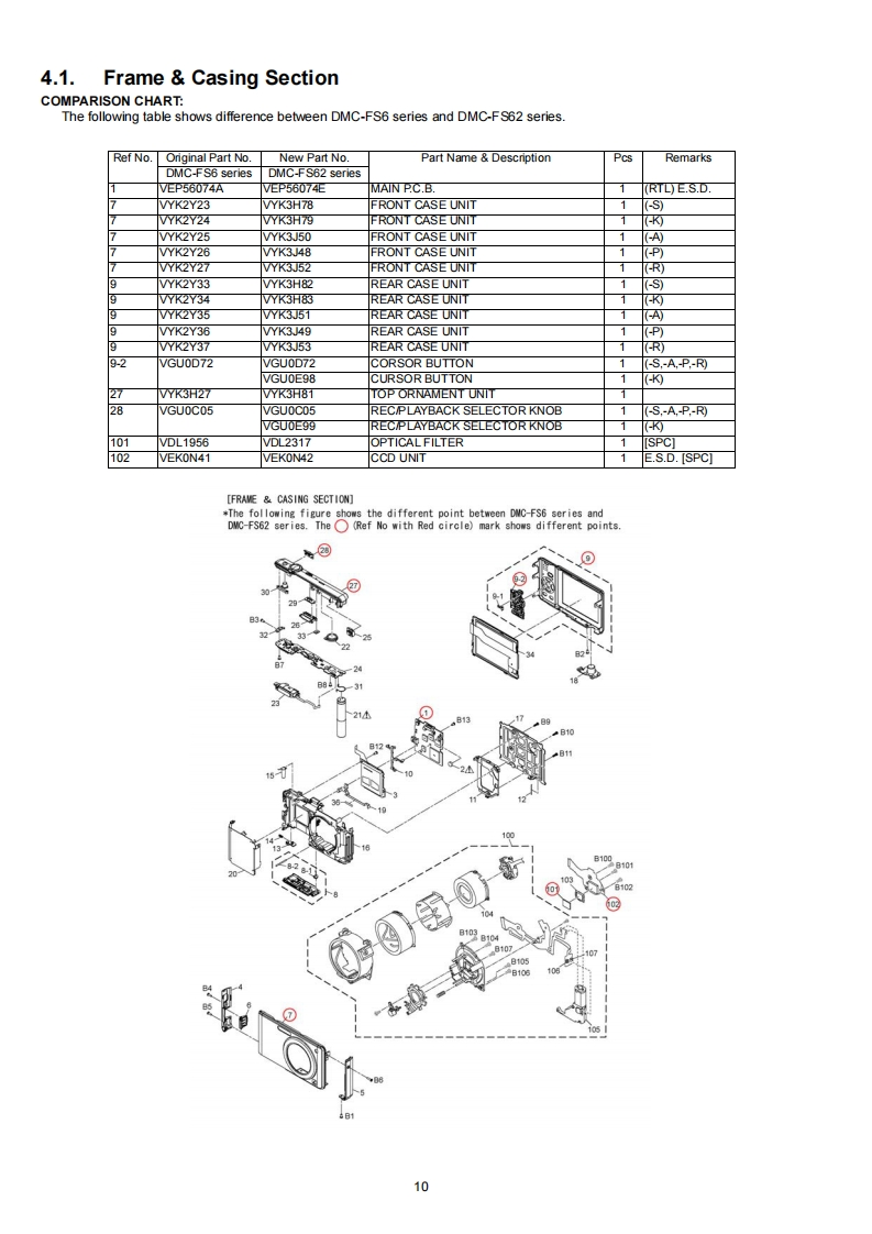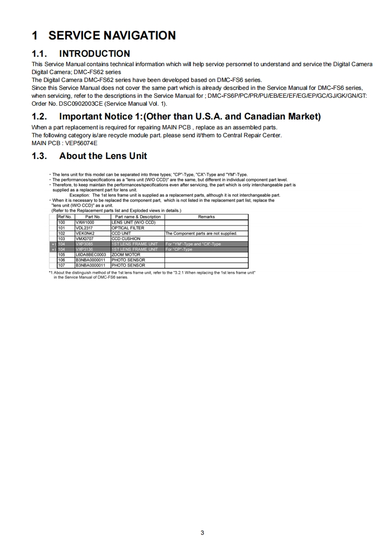 ORDER NO.DSC0905035AEB26Service ManualDigital CameraModel No.DMC-FS62EBSimplifiedDMC-FS62EEDMC-FS62EFDMC-FS62EGLUMIX名DMC-FS62EPDMC-FS62GCDMC-FS62GJDMC-FS62GNVol.1Colour(S)----Silver Type (except EF)(K)----Black Type(P)----Pink Type (except EF/EE/GN)(A)----Blue Type(except EE/GN)(R)-------Red Type(except GC/GJ)Please use this manual together with the service manual forModel No.DMC-FS6P/PC/PR/PU/EB/EE/EF/EG/EP/GC/GJ/GK/GN/GT Vol.1 Order No.DSC0902003CE.AWARNINGThis service information is designed for experienced repair technicians only and is not designed for use by the general public.It does not contain warnings or cautions to advise non-technical individuals of potential dangers in attempting to service a product.Products powered by electricity should be serviced or repaired only by experienced professional technicians.Any attempt to serviceor repair the product or products dealt with in this service information by anyone else could result in serious injury or death.Panasonic Corporation 2009 Unauthorized copy-Panasonicing and distribution is a violation of law.