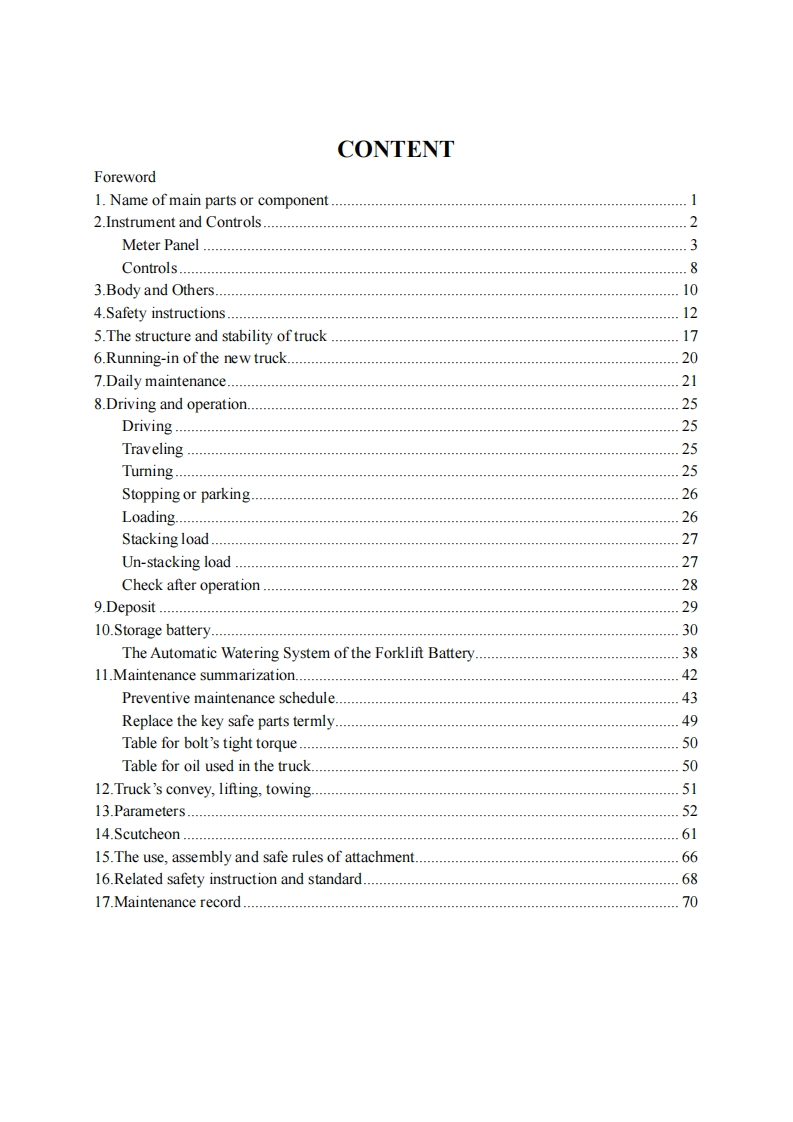 SIC>HANGCHACPD10/15/18/20/25/30JCPD10/15/18/20/25/30JD1CPD10/15/18/20/25/30/35JC1CPD10/15/18/20/25/30/35JC2CPD40/45/50JD1CPD40/45/50JC21~5t J Series Counterbalanced Battery Forklift TruckOPERATION AND MAINTENANCEMANUALOriginal InstructionHANGCHA GROUP CO.,LTD.Dec.2010 5th edition