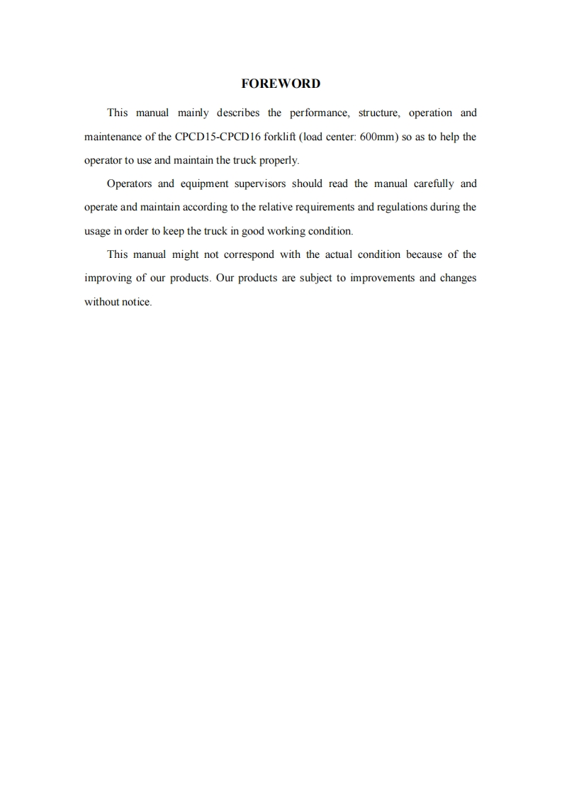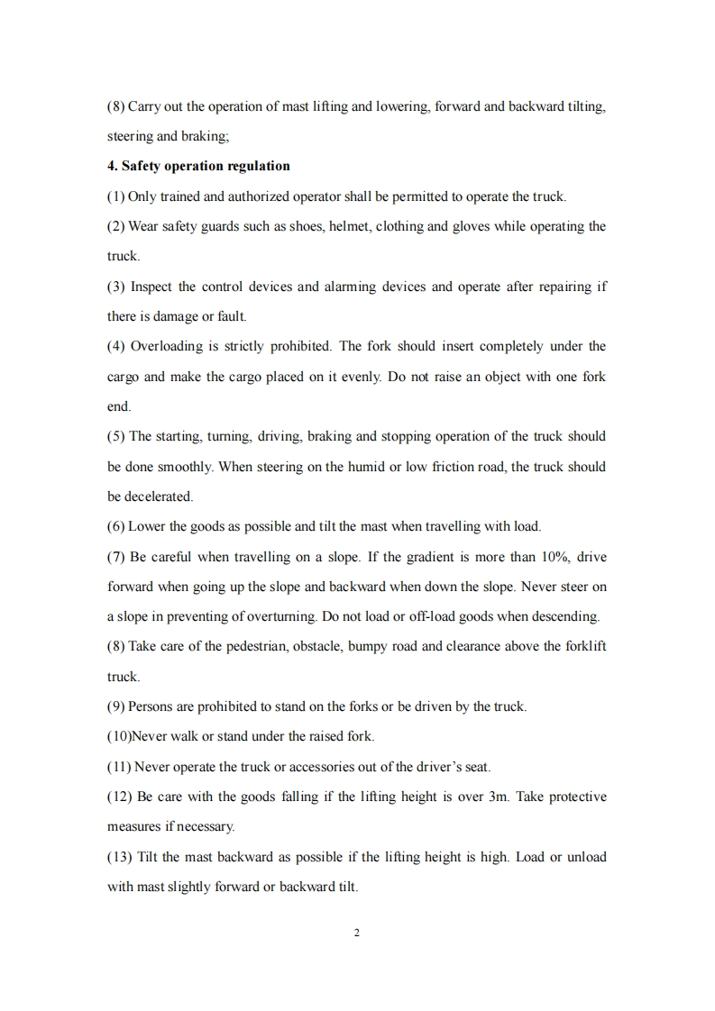 安徽合力叉车HeliCPCD15-CPCD16ForkliftTruckwithEngineService-OperationManual零部件维修说明书手册找手册网5小时前发布关注私信4.73MB204页044安徽合力叉车HeliCPCD15-CPCD16ForkliftTruckwithEngineService-OperationManual零部件维修说明书手册此内容为付费资源,请付费后查看¥19¥21黄金会员免费钻石会员免费立即购买您当前未登录!建议登陆后购买,可保存购买订单付费资源 第1页 / 共204页 第2页 / 共204页 第3页 / 共204页 第4页 / 共204页 第5页 / 共204页 第6页 / 共204页 第7页 / 共204页 第8页 / 共204页 第9页 / 共204页 第10页 / 共204页 试读已结束,还剩194页,您可下载完整版后进行离线阅读 THE END三一/合力 文本预览 OPERATION&SERVICE MANUALBalanceweight TypeForklift Truck With Engine安微合力股停有很公司ANHUI HEU CO,LTD. 查看更多 收起部分 喜欢就支持一下吧收藏