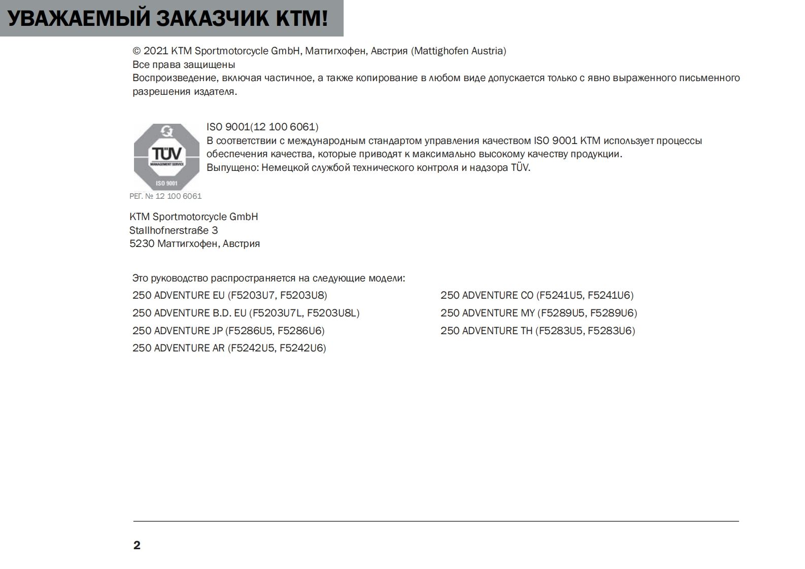 KTM-250-Adventure-驾驶与维护保养手册-RUS-2021找手册网5小时前发布关注私信9.15MB266页040KTM-250-Adventure-驾驶与维护保养手册-RUS-2021此内容为付费资源,请付费后查看¥19¥21黄金会员免费钻石会员免费立即购买您当前未登录!建议登陆后购买,可保存购买订单付费资源 第1页 / 共266页 第2页 / 共266页 第3页 / 共266页 第4页 / 共266页 第5页 / 共266页 第6页 / 共266页 第7页 / 共266页 第8页 / 共266页 第9页 / 共266页 第10页 / 共266页 试读已结束,还剩256页,您可下载完整版后进行离线阅读 THE ENDKtm 文本预览 READY TO RACEPyKOBOCTBO nOnb3OBATEA 2021www.ktm.com250 ADVENTUREApTnKyn No 3214323enKKK 查看更多 收起部分 喜欢就支持一下吧收藏