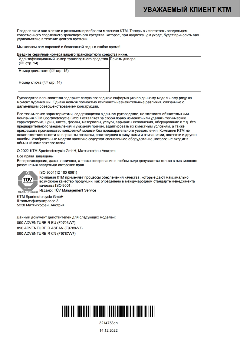 KTM-890-Adventure-R-驾驶与维护保养手册-RUS-2023找手册网4小时前发布关注私信12.26MB178页028KTM-890-Adventure-R-驾驶与维护保养手册-RUS-2023此内容为付费资源,请付费后查看¥19¥21黄金会员免费钻石会员免费立即购买您当前未登录!建议登陆后购买,可保存购买订单付费资源 第1页 / 共178页 第2页 / 共178页 第3页 / 共178页 第4页 / 共178页 第5页 / 共178页 第6页 / 共178页 第7页 / 共178页 第8页 / 共178页 第9页 / 共178页 第10页 / 共178页 试读已结束,还剩168页,您可下载完整版后进行离线阅读 THE ENDKtm 文本预览 READYPyKOBOACTBO nonb3OBATE 2023TO RACE890 ADVENTURE RApT.Ne 3214753EN侧份KK 查看更多 收起部分 喜欢就支持一下吧收藏