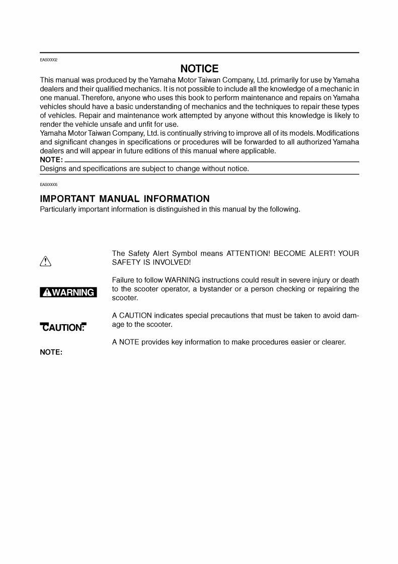 Yamaha_C3_摩托车维修手册找手册网27天前发布关注私信17.10MB338页043Yamaha_C3_摩托车维修手册此内容为付费资源,请付费后查看¥19¥21黄金会员免费钻石会员免费登录购买付费资源 第1页 / 共338页 第2页 / 共338页 第3页 / 共338页 第4页 / 共338页 第5页 / 共338页 第6页 / 共338页 第7页 / 共338页 第8页 / 共338页 第9页 / 共338页 第10页 / 共338页 试读已结束,还剩328页,您可下载完整版后进行离线阅读 THE END雅马哈 文本预览 YAMAHAXF50WSERVICE MANUALL1T-11616-20-583B3-F8197-10 查看更多 收起部分 喜欢就支持一下吧收藏
