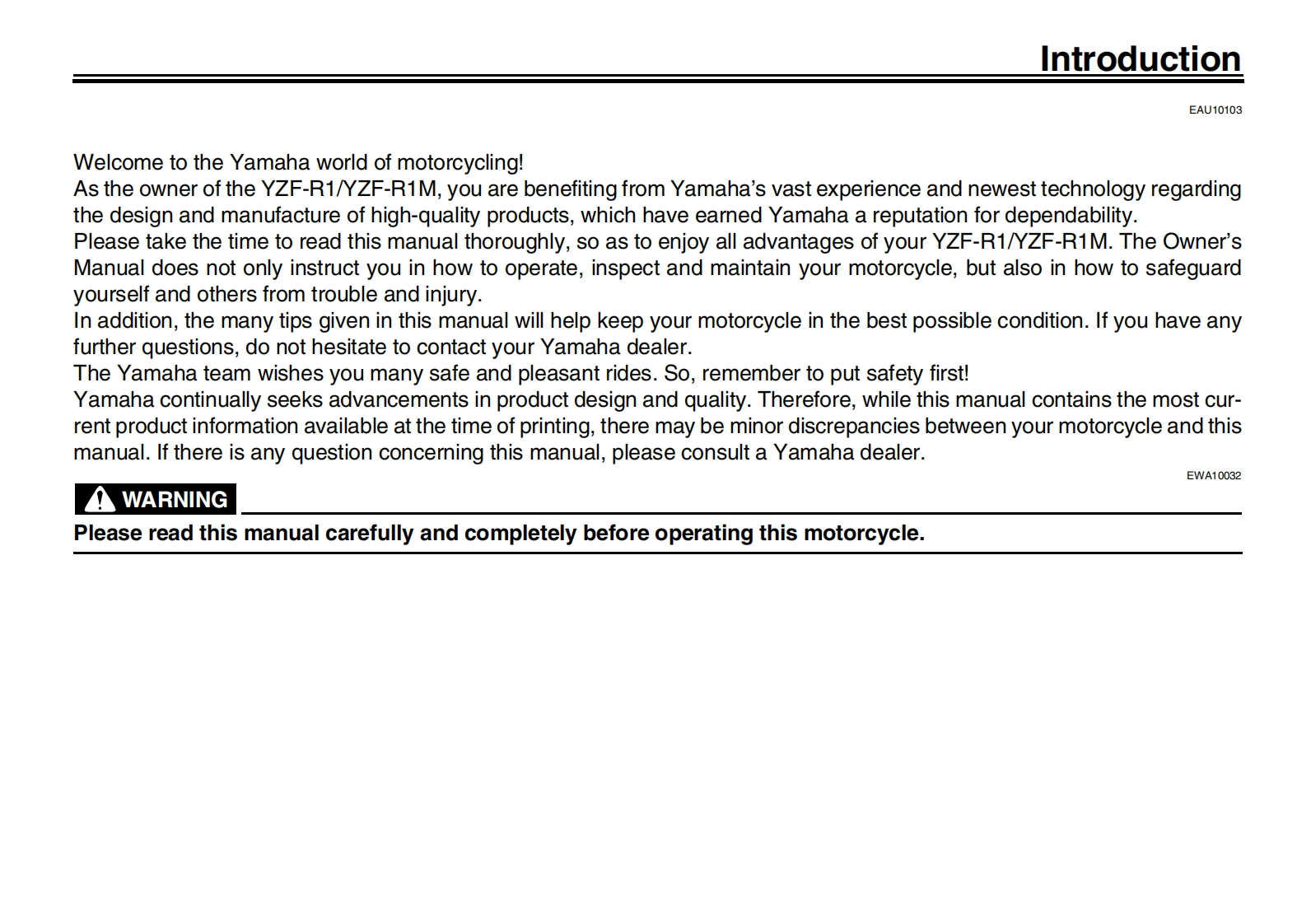 手册编号13:雅马哈摩托车Yamaha-YZF-R1-2017-驾驶说明书手册-BX4-28199-E0找手册网27天前发布关注私信9.51MB130页043手册编号13:雅马哈摩托车Yamaha-YZF-R1-2017-驾驶说明书手册-BX4-28199-E0此内容为付费资源,请付费后查看¥19¥21黄金会员免费钻石会员免费登录购买付费资源 第1页 / 共130页 第2页 / 共130页 第3页 / 共130页 第4页 / 共130页 第5页 / 共130页 第6页 / 共130页 第7页 / 共130页 第8页 / 共130页 第9页 / 共130页 第10页 / 共130页 试读已结束,还剩120页,您可下载完整版后进行离线阅读 THE END雅马哈 文本预览 米YAMAHARead this manual carefully before operating this vehicle.OWNER'S MANUALYZF-R1YZF-R1MBX4-28199-E0■ 查看更多 收起部分 喜欢就支持一下吧收藏
