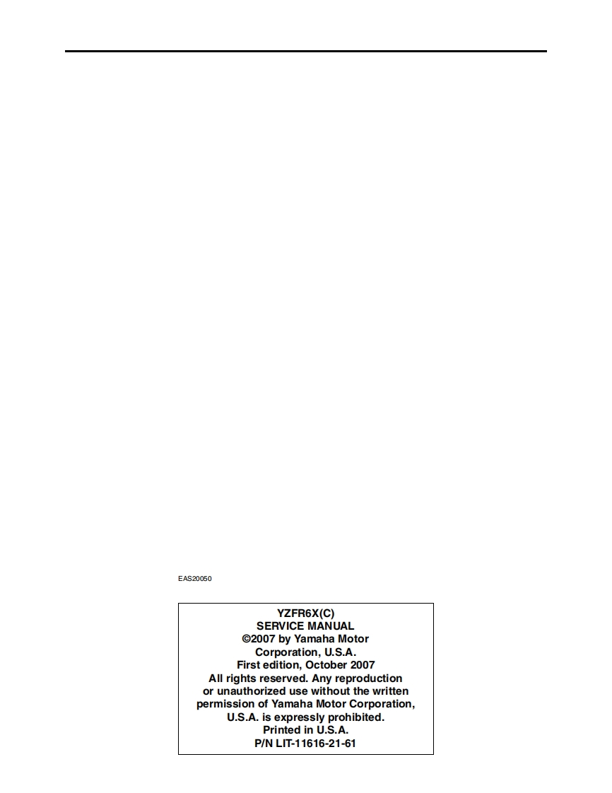 手册编号15:雅马哈摩托车Yamaha-YZF-R6-维修说明书手册-LIT-11616-21-61找手册网27天前发布关注私信22.43MB434页050手册编号15:雅马哈摩托车Yamaha-YZF-R6-维修说明书手册-LIT-11616-21-61此内容为付费资源,请付费后查看¥19¥21黄金会员免费钻石会员免费登录购买付费资源 第1页 / 共434页 第2页 / 共434页 第3页 / 共434页 第4页 / 共434页 第5页 / 共434页 第6页 / 共434页 第7页 / 共434页 第8页 / 共434页 第9页 / 共434页 第10页 / 共434页 试读已结束,还剩424页,您可下载完整版后进行离线阅读 THE END雅马哈 文本预览 米YAMAHA2008SERVICE MANUALYZFR6X(C)LIT-11616-21-6113S-28197-10 查看更多 收起部分 喜欢就支持一下吧收藏