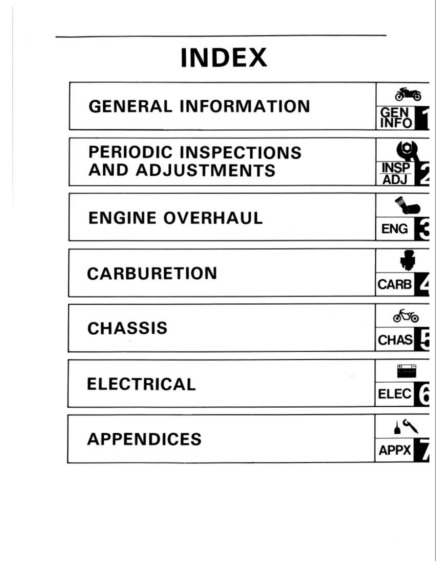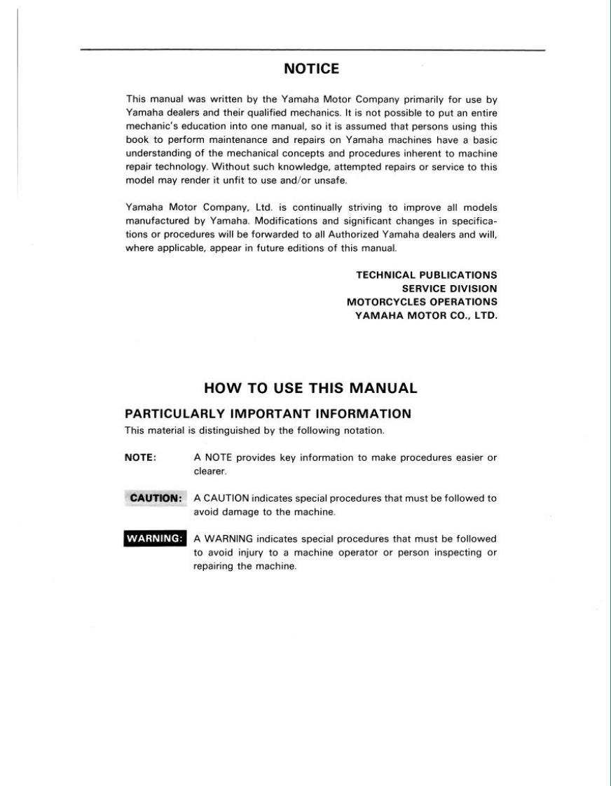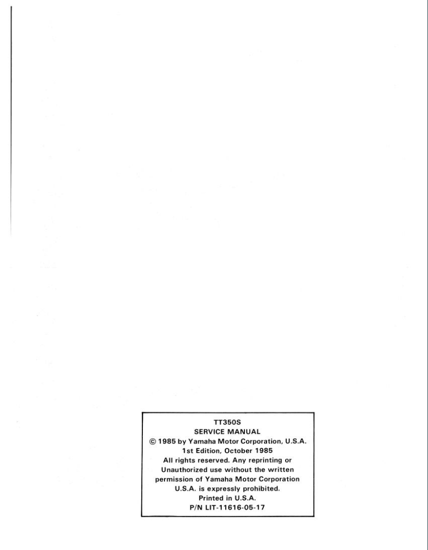 编号19:YAMAHA雅马哈摩托车TT350S_维修说明书手册_1985_EN找手册网27天前发布关注私信21.95MB229页020编号19:YAMAHA雅马哈摩托车TT350S_维修说明书手册_1985_EN此内容为付费资源,请付费后查看¥19¥21黄金会员免费钻石会员免费登录购买付费资源 第1页 / 共229页 第2页 / 共229页 第3页 / 共229页 第4页 / 共229页 第5页 / 共229页 第6页 / 共229页 第7页 / 共229页 第8页 / 共229页 第9页 / 共229页 第10页 / 共229页 试读已结束,还剩219页,您可下载完整版后进行离线阅读 THE END雅马哈 文本预览 ConuineT350SService Manual●SPECIFICATIONS●EXPLODED VIEWS●RECOMMENDED MAINTENANCEOTUNE-UP AND OVERHAUL PROCEDURESLIT-11616-05-17 查看更多 收起部分 喜欢就支持一下吧收藏