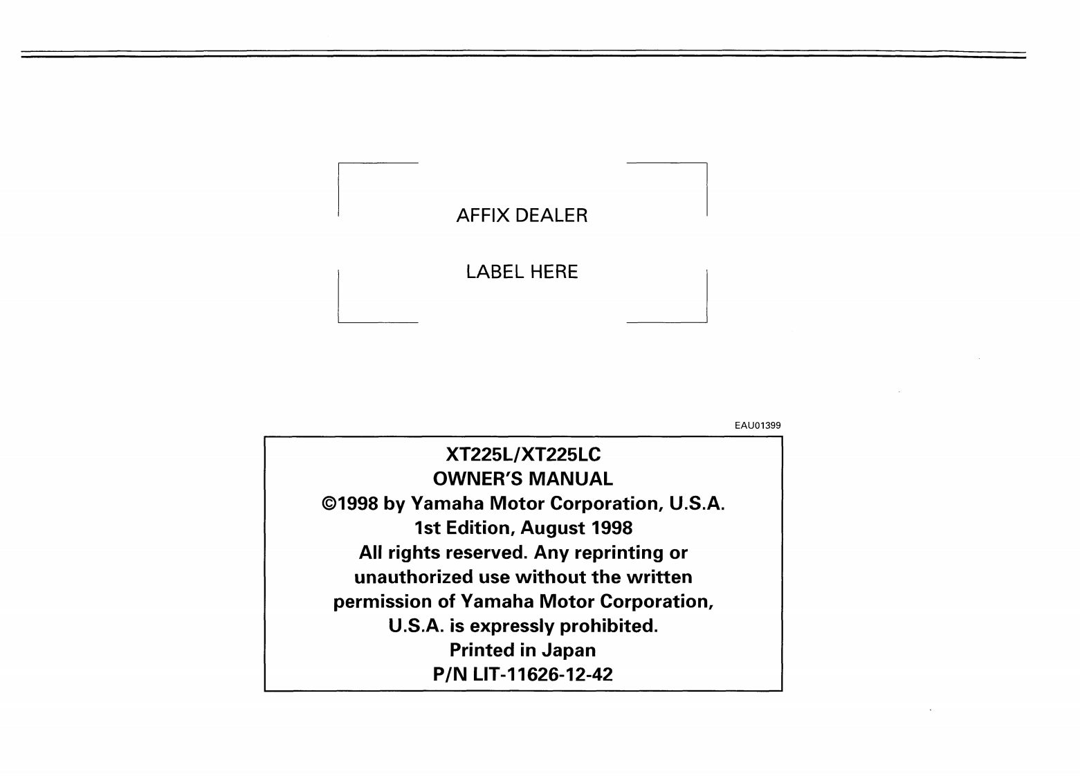 编号5:YAMAHA雅马哈摩托车XT225_用户说明书手册_1998_EN找手册网27天前发布关注私信5.69MB98页036编号5:YAMAHA雅马哈摩托车XT225_用户说明书手册_1998_EN此内容为付费资源,请付费后查看¥19¥21黄金会员免费钻石会员免费登录购买付费资源 第1页 / 共98页 第2页 / 共98页 第3页 / 共98页 第4页 / 共98页 第5页 / 共98页 第6页 / 共98页 第7页 / 共98页 第8页 / 共98页 第9页 / 共98页 第10页 / 共98页 试读已结束,还剩88页,您可下载完整版后进行离线阅读 THE END雅马哈 文本预览 笨YAMAHA100motorcycleOWNER'S MANUALLIT-11626-12-42 查看更多 收起部分 喜欢就支持一下吧收藏
