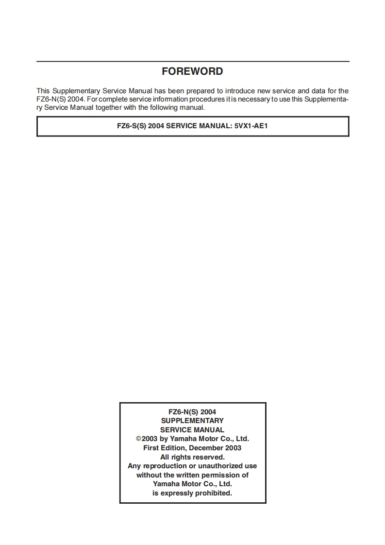 雅马哈FZ6N摩托车维修手册找手册网27天前发布关注私信5.26MB77页029雅马哈FZ6N摩托车维修手册此内容为付费资源,请付费后查看¥19¥21黄金会员免费钻石会员免费登录购买付费资源 第1页 / 共77页 第2页 / 共77页 第3页 / 共77页 第4页 / 共77页 第5页 / 共77页 第6页 / 共77页 第7页 / 共77页 第8页 / 共77页 第9页 / 共77页 第10页 / 共77页 试读已结束,还剩67页,您可下载完整版后进行离线阅读 THE END雅马哈 文本预览 米YAMAHA2004FZ6-N(S)1B31-AE1SUPPLEMENTARYSERVICE MANUAL 查看更多 收起部分 喜欢就支持一下吧收藏