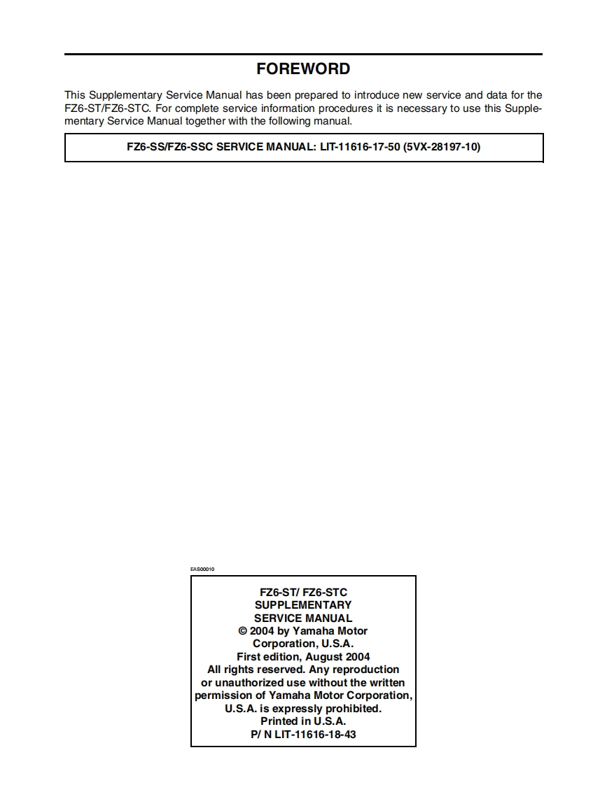 雅马哈FZ6ST摩托车维修手册找手册网27天前发布关注私信2.34MB36页022雅马哈FZ6ST摩托车维修手册此内容为付费资源,请付费后查看¥19¥21黄金会员免费钻石会员免费登录购买付费资源 第1页 / 共36页 第2页 / 共36页 第3页 / 共36页 第4页 / 共36页 第5页 / 共36页 第6页 / 共36页 第7页 / 共36页 第8页 / 共36页 第9页 / 共36页 第10页 / 共36页 试读已结束,还剩26页,您可下载完整版后进行离线阅读 THE END雅马哈 文本预览 ¥YAMAHAFZ6-STF26-STCSUPPLEMENTARYSERVICE MANUALLT-11616-18-435VX-28197-11 查看更多 收起部分 喜欢就支持一下吧收藏
