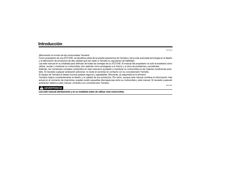 雅马哈XTZ125E摩托车维修零部件说明书手册找手册网27天前发布关注私信13.50MB104页043雅马哈XTZ125E摩托车维修零部件说明书手册此内容为付费资源,请付费后查看¥19¥21黄金会员免费钻石会员免费登录购买付费资源 第1页 / 共104页 第2页 / 共104页 第3页 / 共104页 第4页 / 共104页 第5页 / 共104页 第6页 / 共104页 第7页 / 共104页 第8页 / 共104页 第9页 / 共104页 第10页 / 共104页 试读已结束,还剩94页,您可下载完整版后进行离线阅读 THE END雅马哈 文本预览 11//1MANUAL DEL PROPIETARIOA Lea este manual atentamenteY DE GARANTIAantes de utilizar este vehiculo.XTZ125E2MD-F8199-S266686/6YAMAHA//II1111 查看更多 收起部分 喜欢就支持一下吧收藏