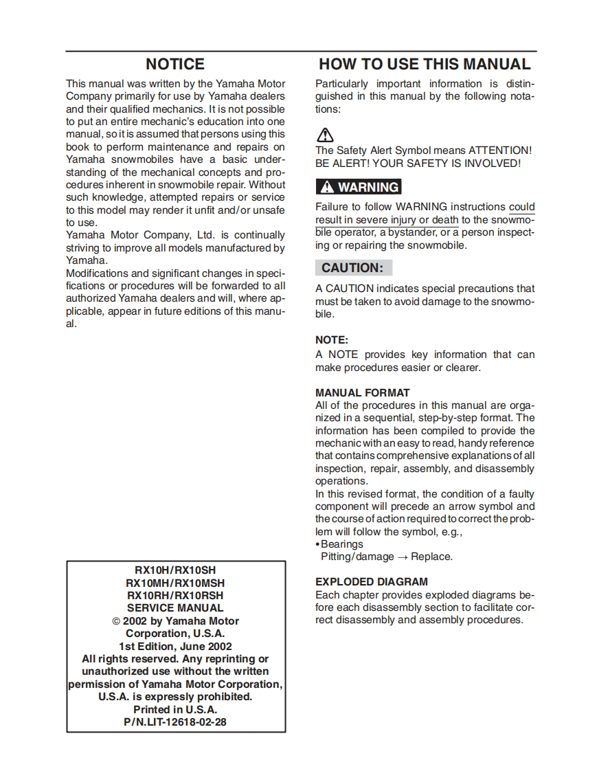 雅马哈YAMAHA-RX-10雪地摩托service-manual维修手册找手册网27天前发布关注私信11.62MB330页024雅马哈YAMAHA-RX-10雪地摩托service-manual维修手册此内容为付费资源,请付费后查看¥19¥21黄金会员免费钻石会员免费登录购买付费资源 第1页 / 共330页 第2页 / 共330页 第3页 / 共330页 第4页 / 共330页 第5页 / 共330页 第6页 / 共330页 第7页 / 共330页 第8页 / 共330页 第9页 / 共330页 第10页 / 共330页 试读已结束,还剩320页,您可下载完整版后进行离线阅读 THE END雅马哈 文本预览 YAMAHASERVICE MANUALRX10H/RX10SHRX10MH/RX10MSHRX10RH/RX10RSH8FA-28197-10LIT-12618-02-28981073 查看更多 收起部分 喜欢就支持一下吧收藏