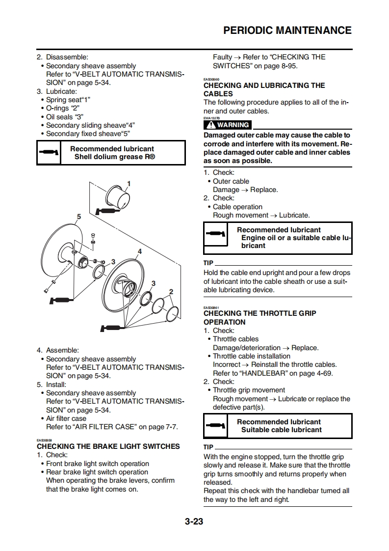雅马哈摩托车yamaha-gpd150a-2015-demo-servicemanual维修操作说明书手册维修操作说明书手册找手册网27天前发布关注私信0.42MB15页038雅马哈摩托车yamaha-gpd150a-2015-demo-servicemanual维修操作说明书手册维修操作说明书手册此内容为付费资源,请付费后查看¥19¥21黄金会员免费钻石会员免费登录购买付费资源 第1页 / 共15页 第2页 / 共15页 第3页 / 共15页 第4页 / 共15页 第5页 / 共15页 第6页 / 共15页 第7页 / 共15页 第8页 / 共15页 第9页 / 共15页 第10页 / 共15页 试读已结束,还剩5页,您可下载完整版后进行离线阅读 THE END雅马哈 文本预览 EA310008TABLE OF CONTENTSGENERAL INFORMATION1SPECIFICATIONS2PERIODIC CHECKS ANDADJUSTMENTS3CHASSIS4ENGINE5COOLING SYSTEM6FUEL SYSTEM7ELECTRICAL SYSTEM8TROUBLESHOOTING9 查看更多 收起部分 喜欢就支持一下吧收藏