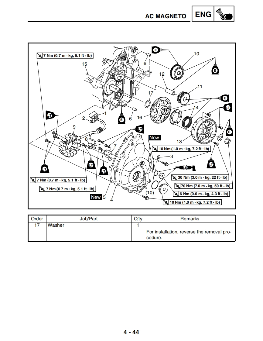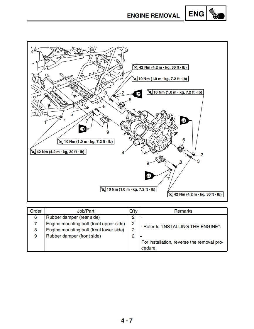 EBS00004HOW TO USE THIS MANUALMANUAL ORGANIZATIONThis manual consists of chapters for the main categories of subjects.(See "symbols")1st title 1:This is the title of the chapter with its symbol in the upper right comner of each page.2nd title 2:This title indicates the section of the chapter and only appears on the first page of eachsection.It is located in the upper left corner of the page.3rd title 3:This title indicates a sub-section that is followed by step-by-step procedures accompa-nied by corresponding illustrations.EXPLODED DIAGRAMSTo help identify parts and clarify procedure steps,there are exploded diagrams at the start of eachremoval and disassembly section.1.An easy-to-see exploded diagram is provided for removal and disassembly jobs.2.Numbers 5 are given in the order of the jobs in the exploded diagram.A number that is enclosedby a circle indicates a disassembly step.3.An explanation of jobs and notes is presented in an easy-to-read way by the use of symbol marks6.The meanings of the symbol marks are given on the next page.4.A job instruction chart accompanies the exploded diagram,providing the order of jobs,namesof parts,notes in jobs,etc.5.For jobs requiring more information,the step-by-step format supplements 8 are given in additionto the exploded diagram and the job instruction chart.②①CLTCH ENGCLUTCH ENGtw闲c品.G TIE CLTON-③④⑧西下可⑤远零⑥⑦NW/EECEn由na234-5的4-85