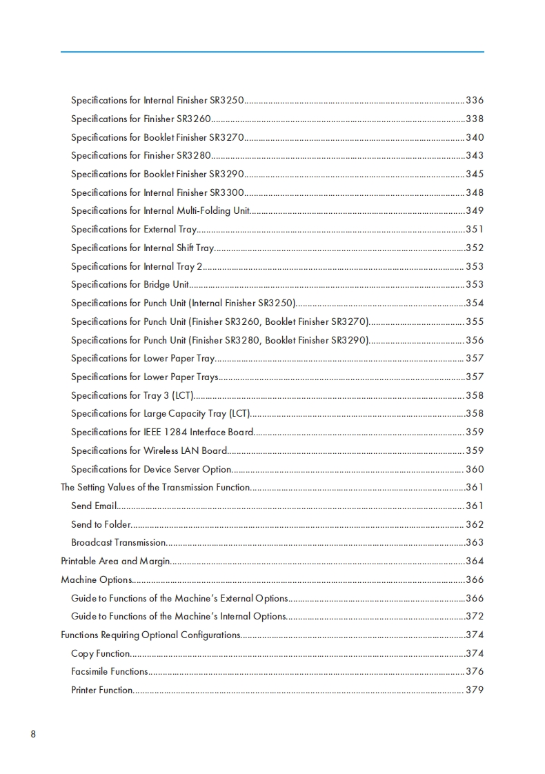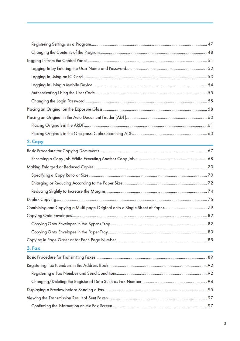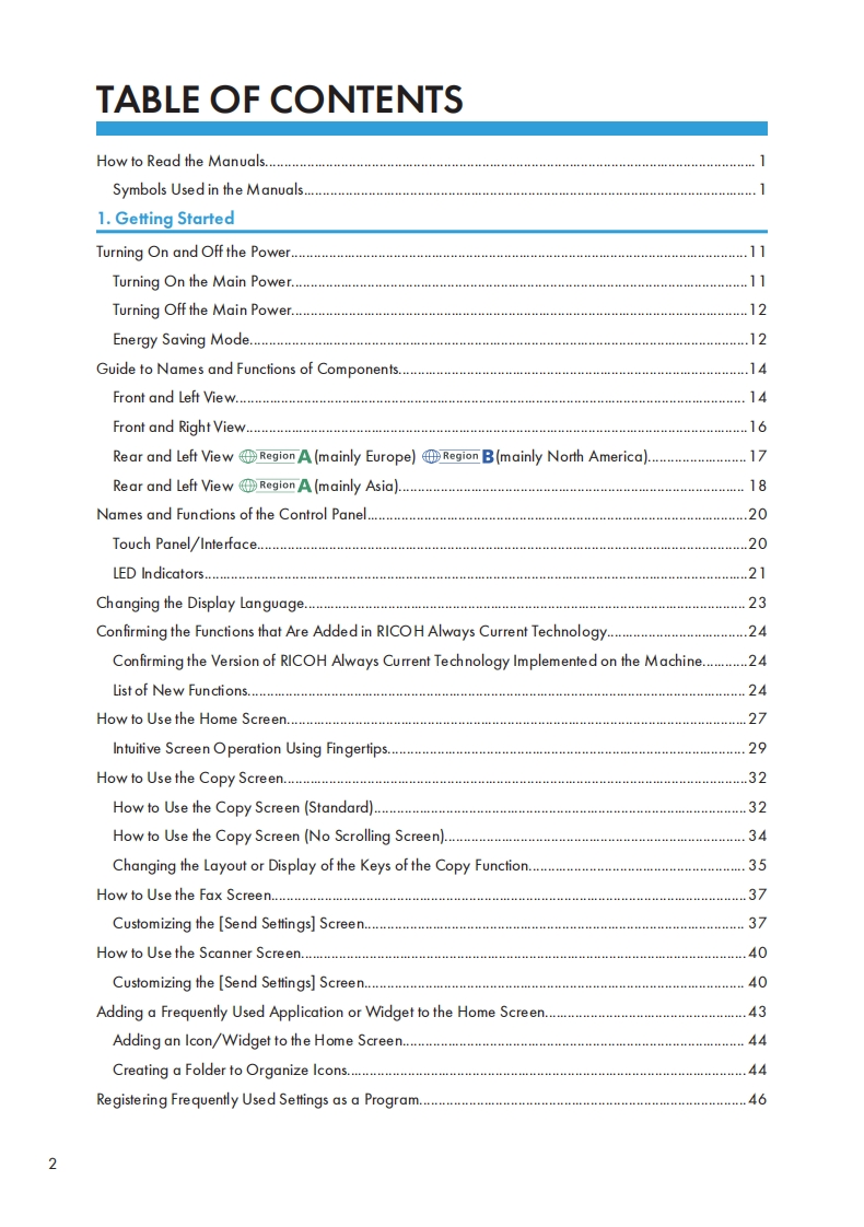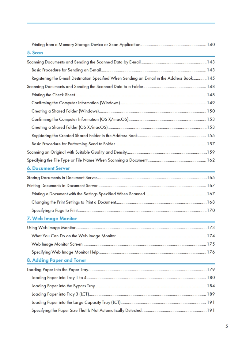 IMC2000/C2500/C3000/C3500/C4500/C5500/C6000 seriesUser GuideGetting StartedSelected VersionCopy2Fax3Print4Scan5Document Server6Web Image MonitorAdding Paper and Toner8Troubleshooting9Specifications for The Machine10Legal and Contact InformationFor information not found in this manuals,httpsee the online manuals available on ourweb site(https://www.ricoh.com/)or via thecontrol panel.For safe and correct use,be sure to read Safety Information beforeusing the machine.