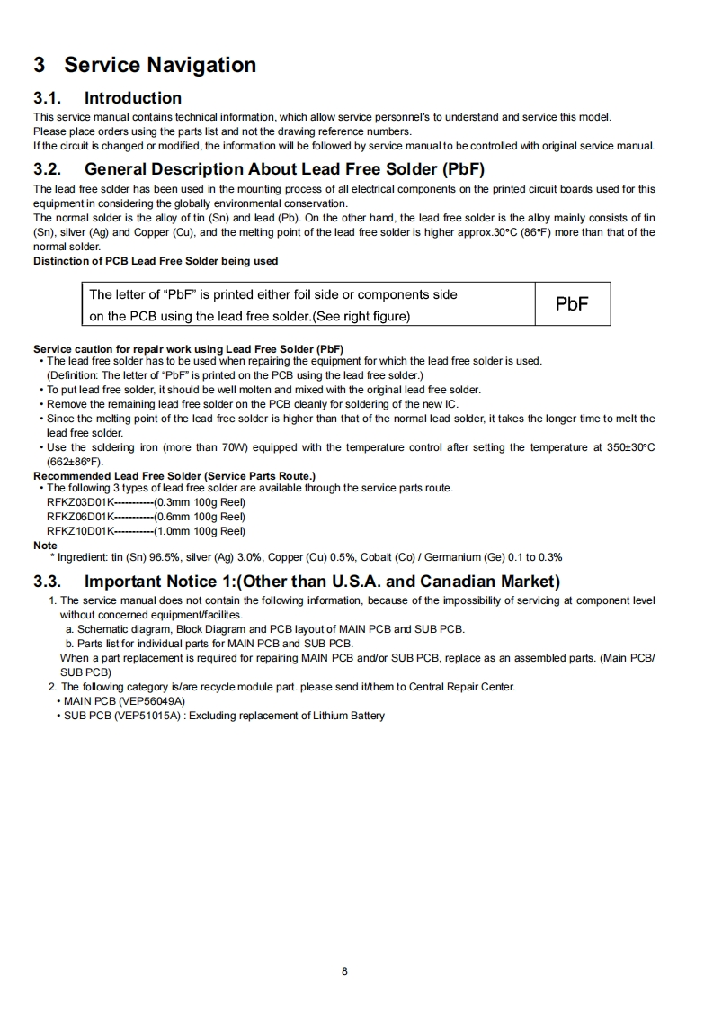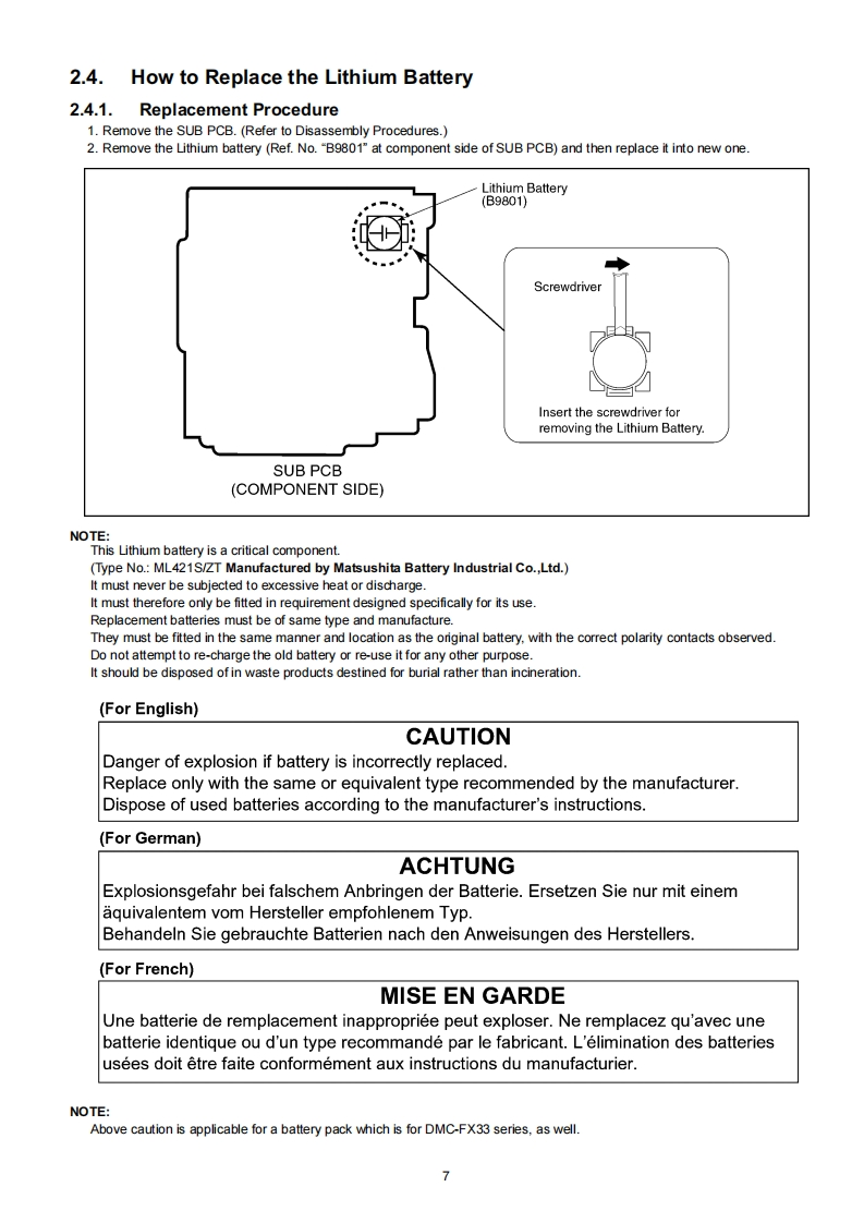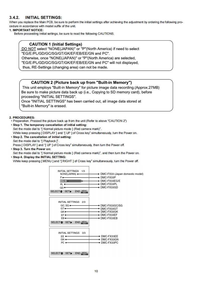 ORDER NO.DSC0708032CEB26Service ManualDigital CameraLUMIXModoI No.DMC-FX33PLEICADC VARID-ELMARIT三DMC-FX33PCDMC-FX33PLDMC-FX33EDMC-FX33EBDMC-FX33EEDMC-FX33EFDMC-FX33EGDMC-FX33GCDMC-FX33GDDMC-FX33GKDMC-FX33GNDMC-FX33GTDMC-FX33SGVol.1Colour(S)...........Silver Type(K)..BIack Type(T)...........Brown Type (only P/E/EE/EF/EG)(W)..........White Type (only GC/GK/GT/SG)(P)........Pink Type(only EB/GC/GK/GT/SG)(A)...........Blue Type (only P/PC/PL/E/EE/EG)AWARNINGThis service information is designed for experienced repair technicians only and is not designed for use by the general public.It does not contain warnings or cautions to advise non-technical individuals of potential dangers in attempting to service a product.Products powered by electricity should be serviced or repaired only by experienced professional technicians.Any attempt to serviceor repair the product or products dealt with in this service information by anyone else could result in serious injury or death.2007 Matsushita Electric Industrial Co..Ltd.AllPanasonicrights reserved.Unauthorized copying and distribu-tion is a violation of law.
