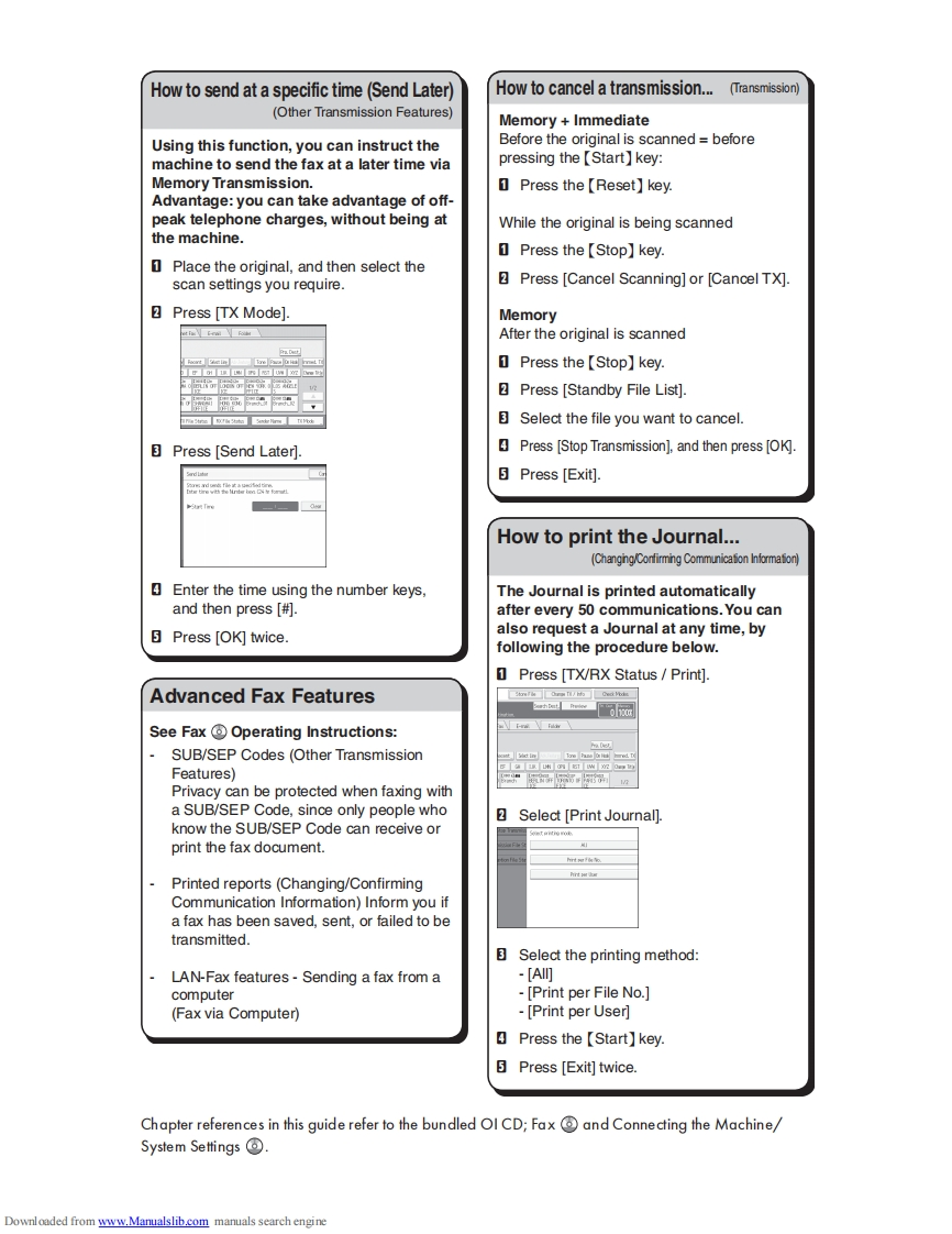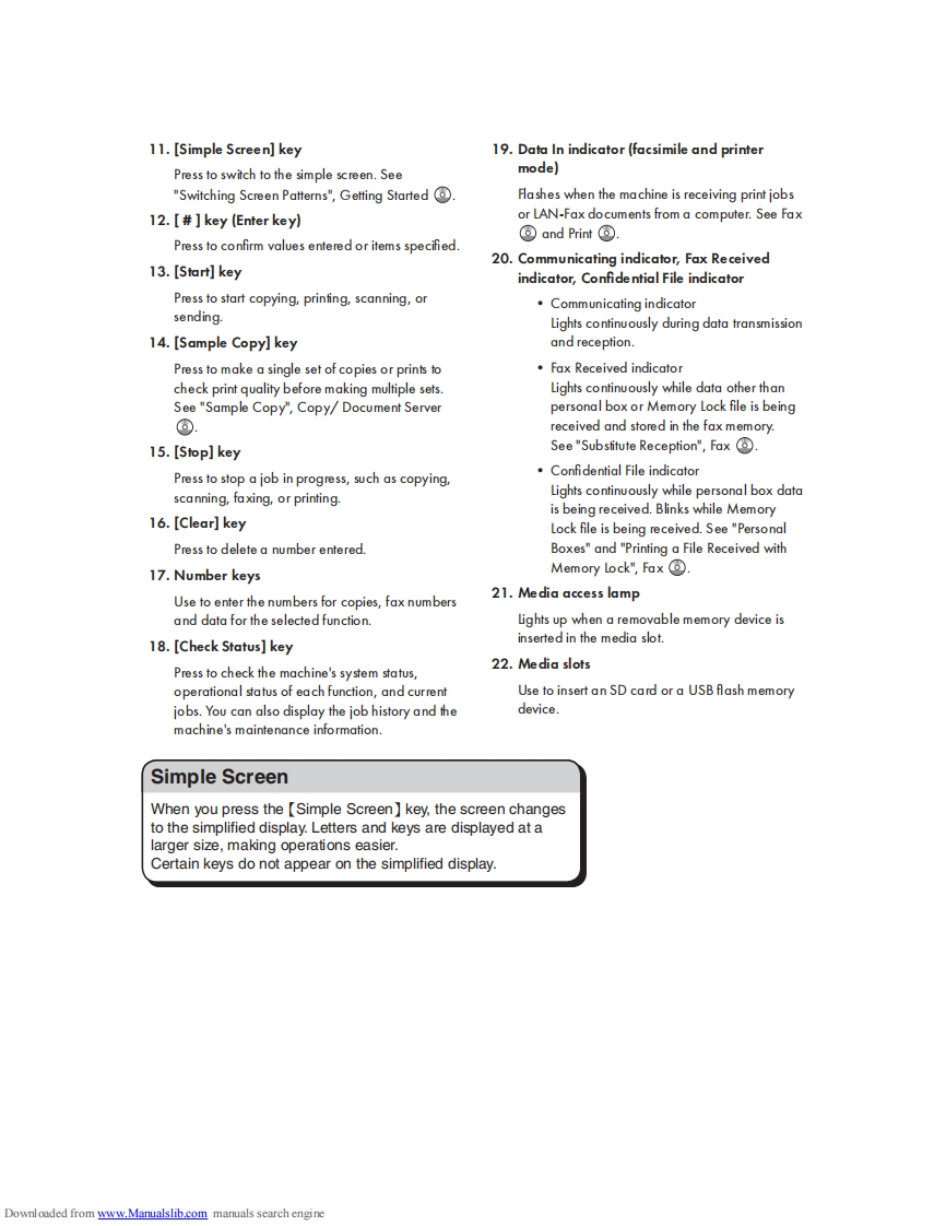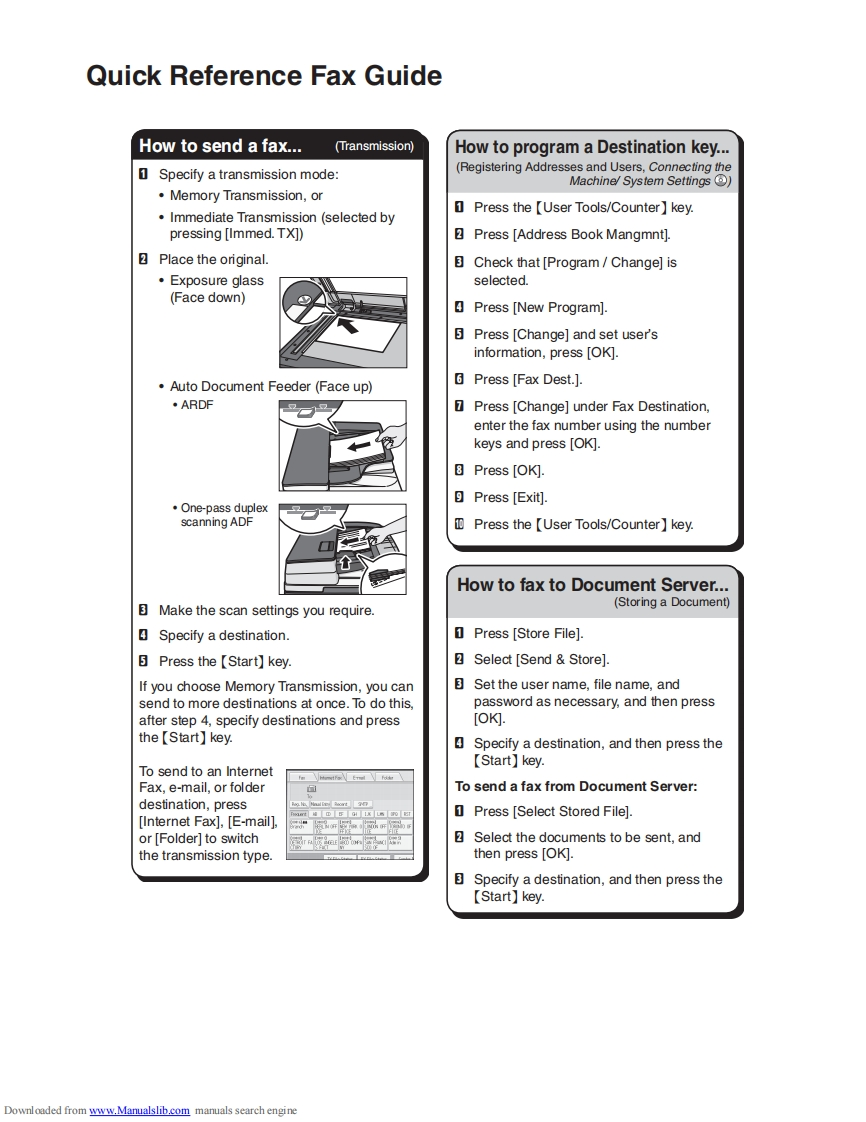 MPC3003/C3503/C4503/C5503/C6003 seriesUser GuideWhat You Can Do with This MachineGetting Started2Copy3Fax4Print5Scan6Document ServerWeb Image Monitor8Adding Paper and Toner9Troubleshooting10For information not in this manual,refer tothe HTMU/PDF files on the suppliedCD-ROM.For safe and correct use,be sure to read the Safety Information in"Read This First"before using the machine.Downloaded from www.Manualslib.com manuals search engine