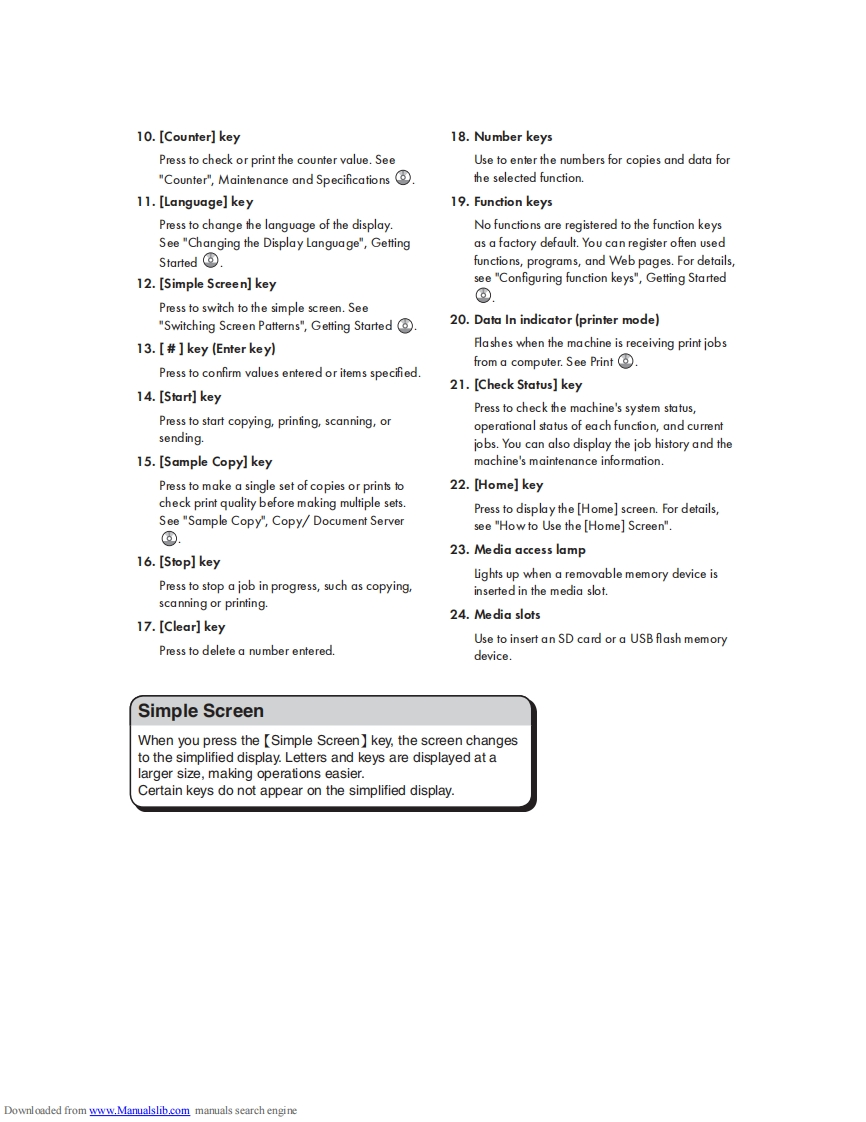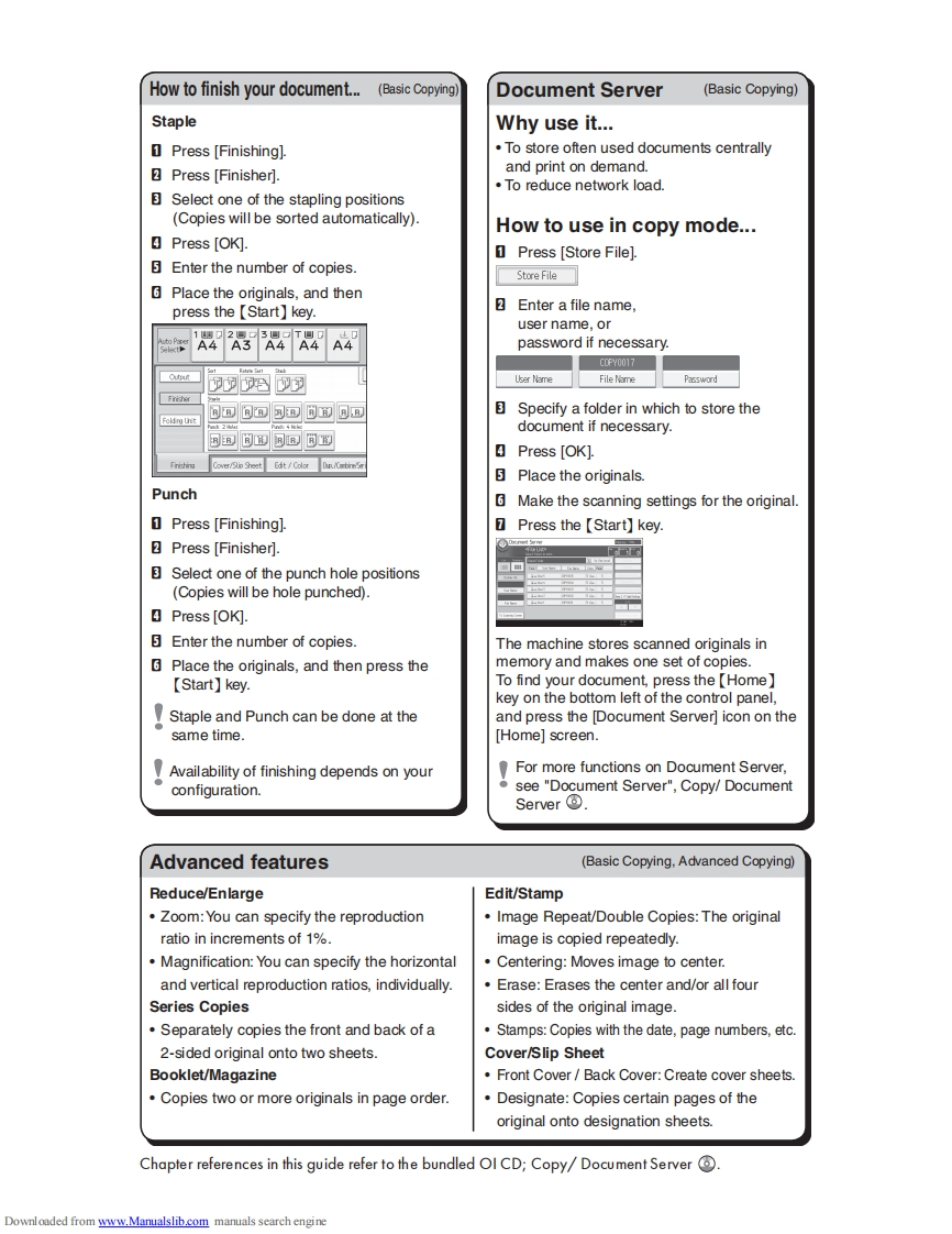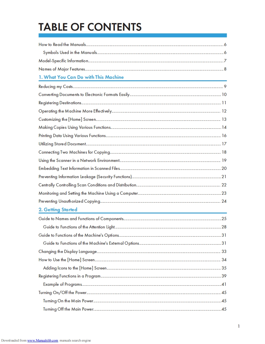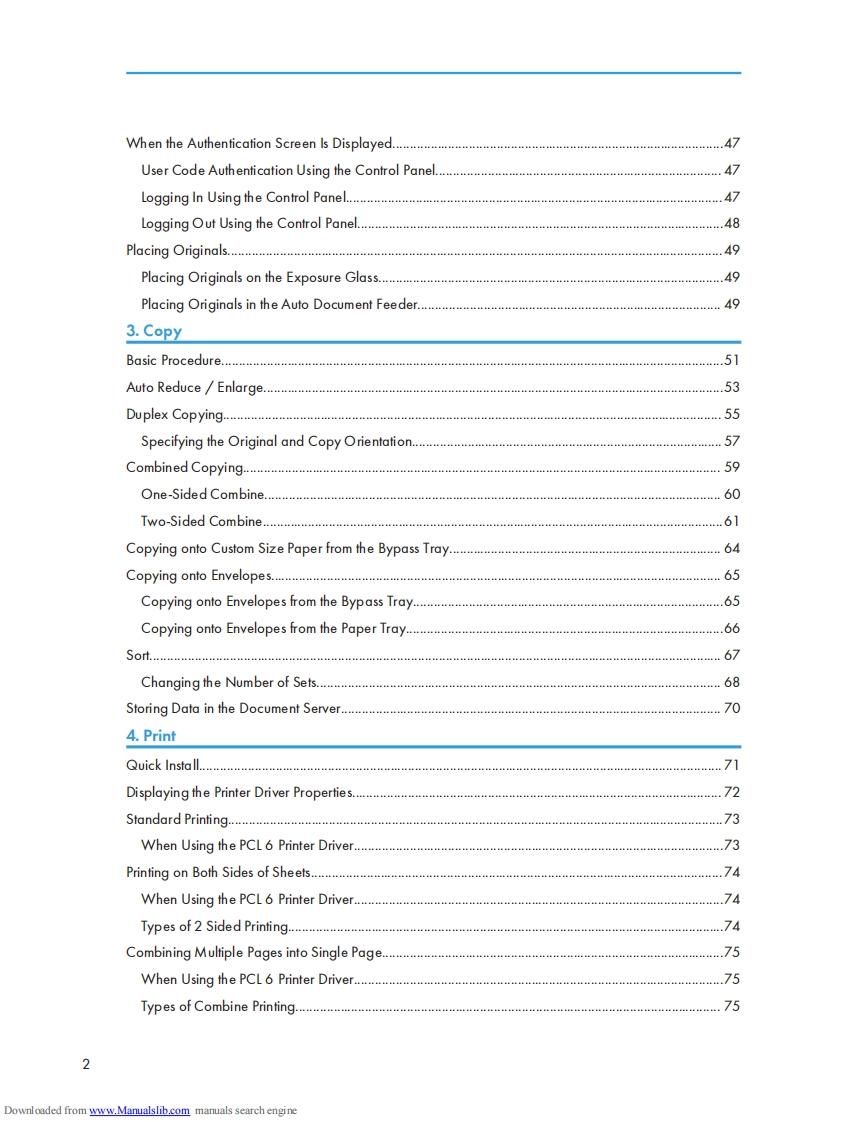 Pro C5100/C5110 seriesUser GuideWhat You Can Do with This MachineGetting Started2Copy3Print4Scan5Document Server6Web Image MonitorAdding Paper and Toner8Troubleshooting9For information not in this manual,refer tothe HTML/PDF files on the suppliedCD-ROM.昌For safe and correct use,be sure to read the Safety Information in"Read This First"before using the machine.Downloaded from www.Manualslib.com manuals search engine