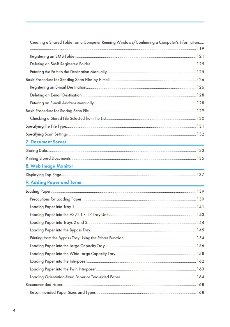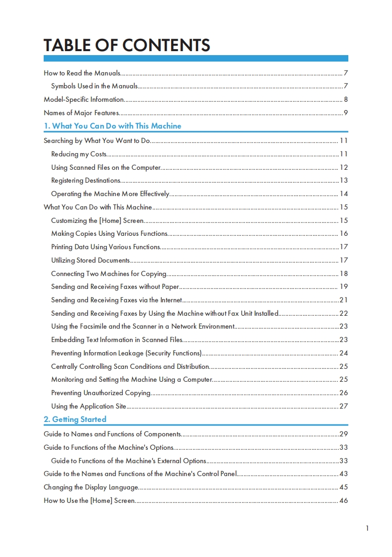 MP C6503sP/C8003spUser GuideWhat You Can Do with This MachineGetting Started2Copy3Fax4Print5吗Scan6Document Server7Web Image Monitor8Adding Paper and Toner9Troubleshooting10Information for This Machine11For safe and correct use,be sure to read the Safety Information inRead This First before using the machine.