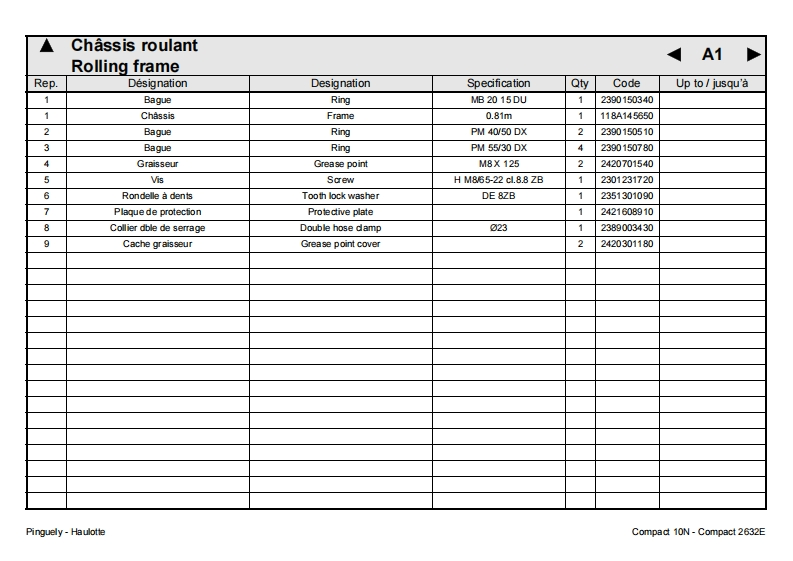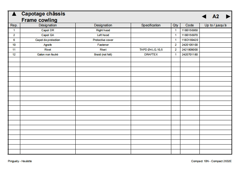 Pinguely-HaulotteCompact 10N-Compact 2632E2420319660-e12.04FPieces de rechangePezzi di ricambioGBSpare partsPecas sobressalentesDErsatzteileSReservdelNLOnderdelenSFVaraosaDKReservedeleUSASpare partsEPiezas de repuestoCANSpare partsRPiese de schimbHaulotteL A CCES A L E SPACEPINGUELY HAULOTTE.LA PERONNIERE BP 9 42152 LHORME.Tel.+33 (0)4 77 29 24 24.Fax SAV +33 (0)4 77 29 98 88 email haulotte@haulotte.com Web www.haulotte.com