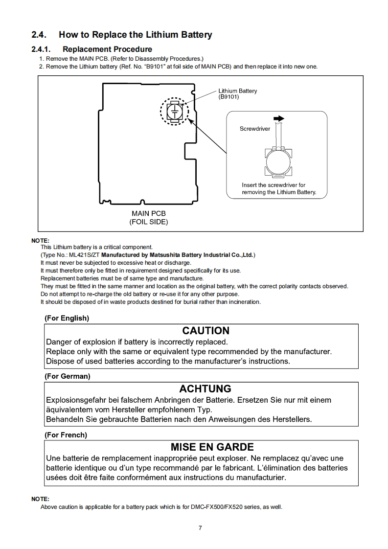ORDER NO.DSC0804028CEB26Service ManualDigital CameraLUMIXModoI No.DMC-FX500P名DMC-FX500PCDMC-FX500PLDMC-FX500EDMC-FX500EBDMC-FX500EEDMC-FX500EFDMC-FX500EGDMC-FX500SGDMC-FX520GCDMC-FX520GDDMC-FX520GKDMC-FX520GNDMC-FX520GTDMC-FX520GJVol.1Colour(S)...........Silver Type (except PC/GD)(K)...........Black Type (except GN)WARNINGThis service information is designed for experienced repair technicians only and is not designed for use by the general public.It does not contain warnings or cautions to advise non-technical individuals of potential dangers in attempting to service a product.Products powered by electricity should be serviced or repaired only by experienced professional technicians.Any attempt to serviceor repair the product or products dealt with in this service information by anyone else could result in serious injury or death.2008 Matsushita Electric Industrial Co..Ltd.AllPanasonicrights reserved.Unauthorized copying and distribu-tion is a violation of law.