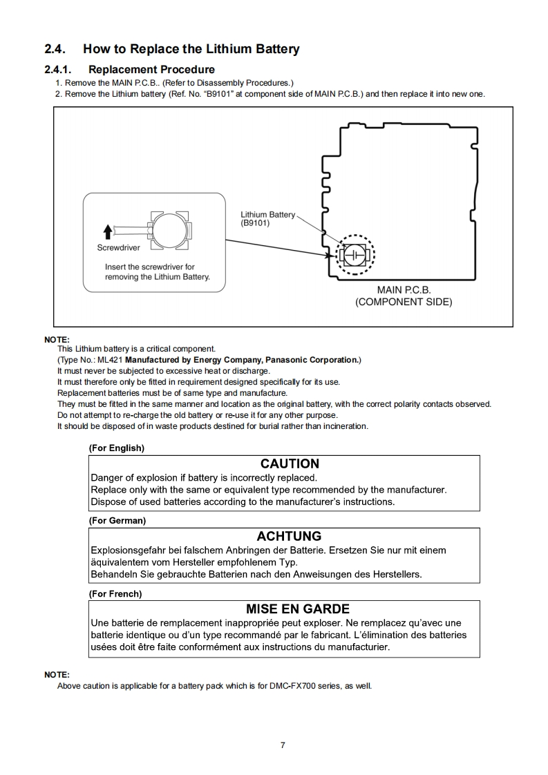ORDER NO.DSC1008051CEB26Service ManualDigital CameraLUMIXModel No.DMC-FX700P2"H▣nDMC-FX700PCDMC-FX700PUDMC-FX700EBDMC-FX700EEDMC-FX700EFDMC-FX700EGDMC-FX700EPDMC-FX700GCDMC-FX700GDDMC-FX700GHDMC-FX700GKDMC-FX700GNDMC-FX700GTDMC-FX700SGVol.1Colour(S).........Silver Type (only P/PC/GC/GH/GK/SG)(K)......Black Type(N).........Gold Type(only GC/GD/GK/GT/SG)(W)..........White Type (only GC/GD/GH/GT/SG)△NARNINGThis service information is designed for experienced repair technicians only and is not designed for use by the general public.It does not contain warnings or cautions to advise non-technical individuals of potential dangers in attempting to service a product.Products powered by electricity should be serviced or repaired only by experienced professional technicians.Any attempt to serviceor repair the product or products dealt with in this service information by anyone else could result in serious injury or death.Panasonic Corporation 2010 Unauthorized copy-Panasonicing and distribution is a violation of law.