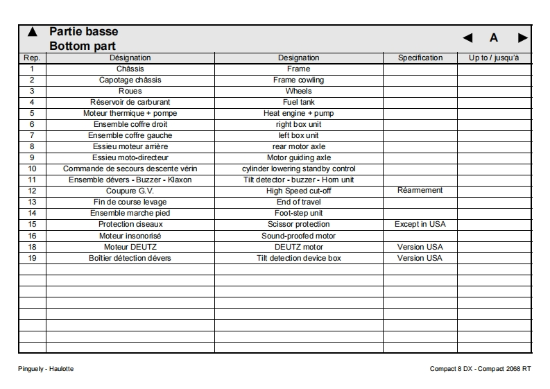 Pinguely-HaulotteCompact 8 DX-Compact 2068 RT2420320550-E06.03FPieces de rechangePezzi di ricambioGBSpare partsPecas sobressalentesDErsatzteileSReservdelNLOnderdelenSFVaraosa的DKReservedeleUSASpare partsEPiezas de repuestoCANSpare partsRPiese de schimbHaulotte°MPINGUELY HAULOTTE.LA PERONNIERE BP 9 42152 LHORME Tel.+33 (0)4 77 29 24 24.Fax SAV +33 (0)4 77 31 28 11 email haulotte@haulotte.com Web www.haulotte.com