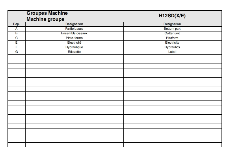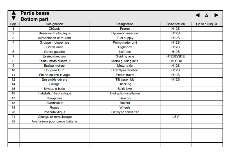 Pinguely HaulotteH12 SD (X/E)FPieces de rechange2420315840GBSpare partsDErsatzteileNLOnderdelenDKReservedeleE01.01EPiezas de repuestoPezzi di ricambioPecas sobressalentesReservdelLa PeronniereTelephone:(330477292424BP9SFFax SAV:(33)0477312811Varaosa42152 L'HORMEIntemnet:http:/www.haulotte.comFRANCEE-Mail haulotte@haulotte.com(∈