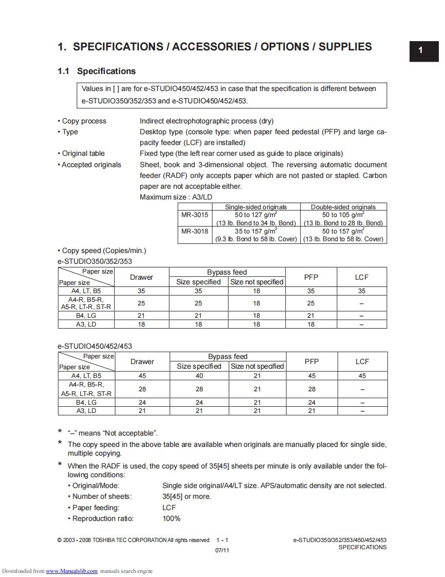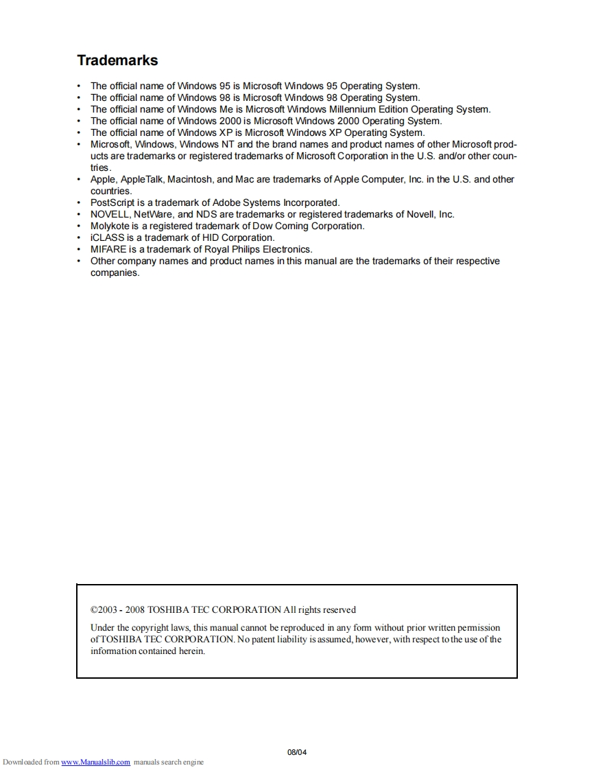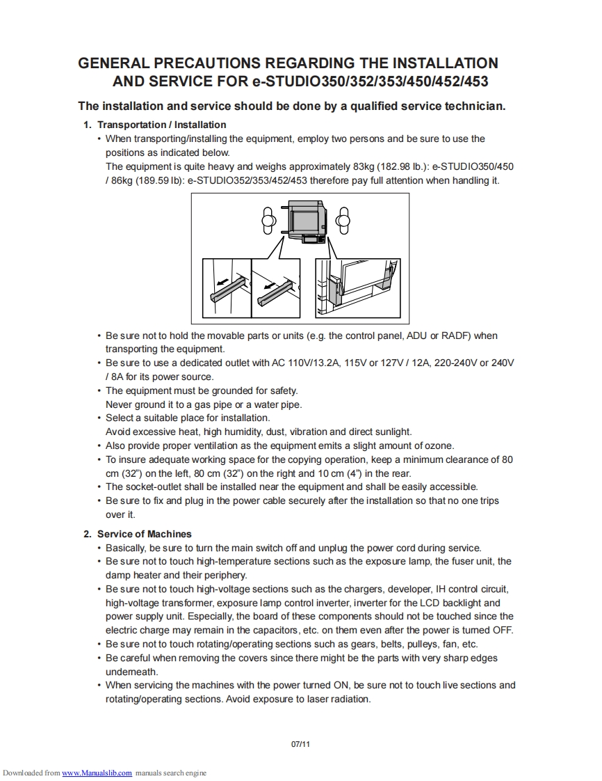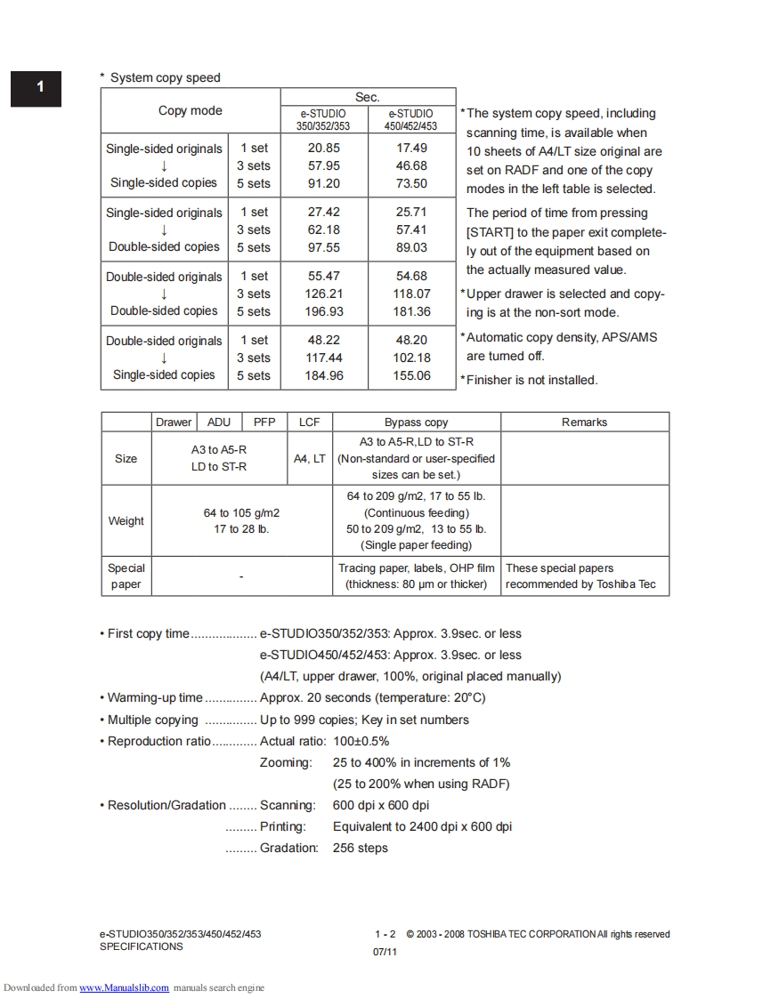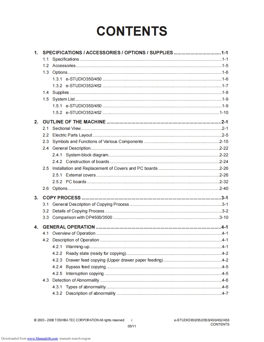 TOSHIBALeading Innovation >>SERV C旺MANUALMULTIFUNCTIONAL DIGITAL SYSTEMSe-STU010350/450e-STUD10352/452e-STUD0353/453Mode:DP.3520/354014520/4540Publish Date:November 2003File No.SME03002810R03092140702-TTECVer092008-04Downloaded from www.Manualslib.com manuals search engine