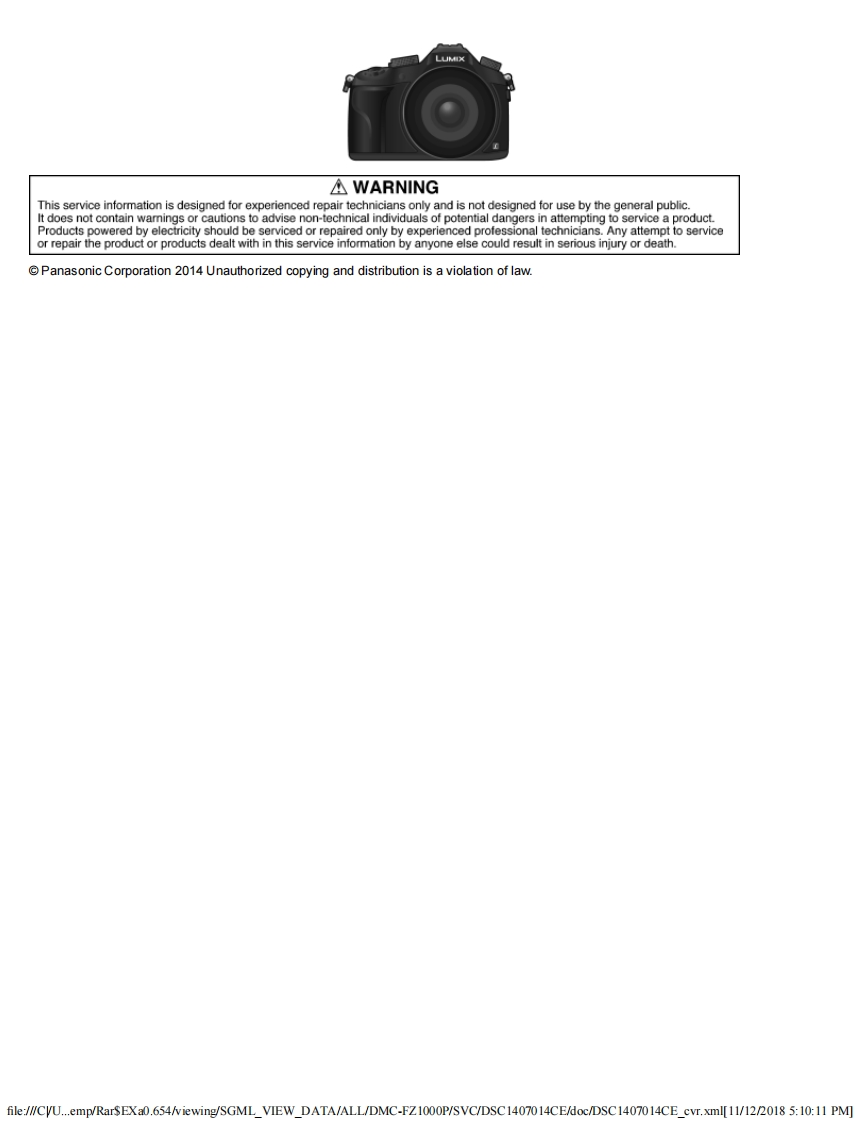 PanasonicORDER NO.DSC1407014CEB26Service ManualDigital CameraModel No.DMC-FZ1000PDMC-FZ1000PCDMC-FZ1000PUDMC-FZ1000EBDMC-FZ1000EEDMC-FZ1000EFDMC-FZ1000EGDMC-FZ1000EPDMC-FZ1000GNColour(K).......Black TypeLUMIX是wiFiCERTIFIEDAVCHD~ProgresshvePictBridge品USB LAN WLAN3dInafile:///CVU...emp/RarSEXa0.654/viewing/SGML_VIEW_DATA/ALL/DMC-FZ1000P/SVC/DSC1407014CE/doc/DSC1407014CE_cvr.xml[11/12/2018 5:10:11 PM]