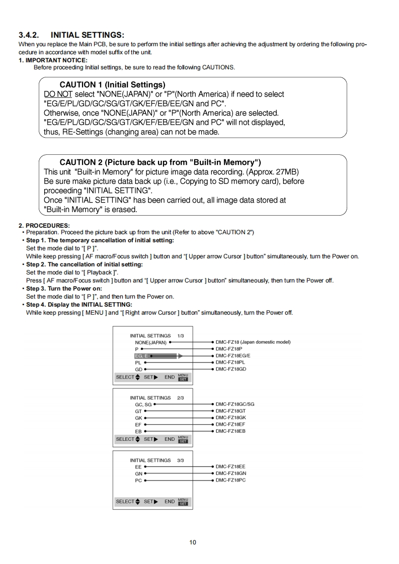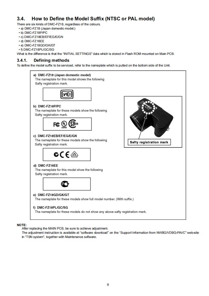 ORDER NO.DSC0708030CEB26Service ManualDigital CameraModeI No.DMC-FZ18PLUMIXLEICADMC-FZ18PCDC VARIO-ELMARIT品DMC-FZ18PLDMC-FZ18EBDMC-FZ18EEDMC-FZ18EFDMC-FZ18EGDMC-FZ18EDMC-FZ18GCDMC-FZ18GDDMC-FZ18GKDMC-FZ18GNDMC-FZ18GTDMC-FZ18SGVOL.1Colours(S).............Silver Type (except PL/GD/GT/SG)(K)Black TypeAWARNINGThis service information is designed for experienced repair technicians only and is not designed for use by the general public.It does not contain warnings or cautions to advise non-technical individuals of potential dangers in attempting to service a product.Products powered by electricity should be serviced or repaired only by experienced professional technicians.Any attempt to serviceor repair the product or products dealt with in this service information by anyone else could result in serious injury or death.2007 Matsushita Electric Industrial Co.,Ltd.AllPanasonicrights reserved.Unauthorized copying and distribu-tion is a violation of law.