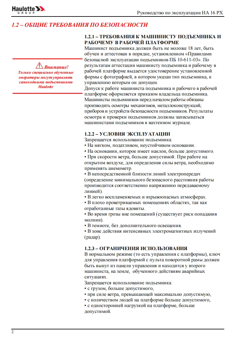Haulotte(€GROUPPYKOBOICTBO IIO 9KCILIYATALNNCAMOIHLIN MEXAHI3HPOBAHHbINΠOIbEMHIK C PABO4 EN IIJIATΦOPMONHA 16 PX242032072012.05.00.00.000P3WWw.HAULOTIE.BOM工£44Haulotte>》JPinguely-Haulotte -La Peronniere -BP 9-42152 I'Horme France-Tel:+33 (0)4 77 29 24 24-Fax:+33 (0)4 77 29 43 95 -email haulotte@haulotte.com
