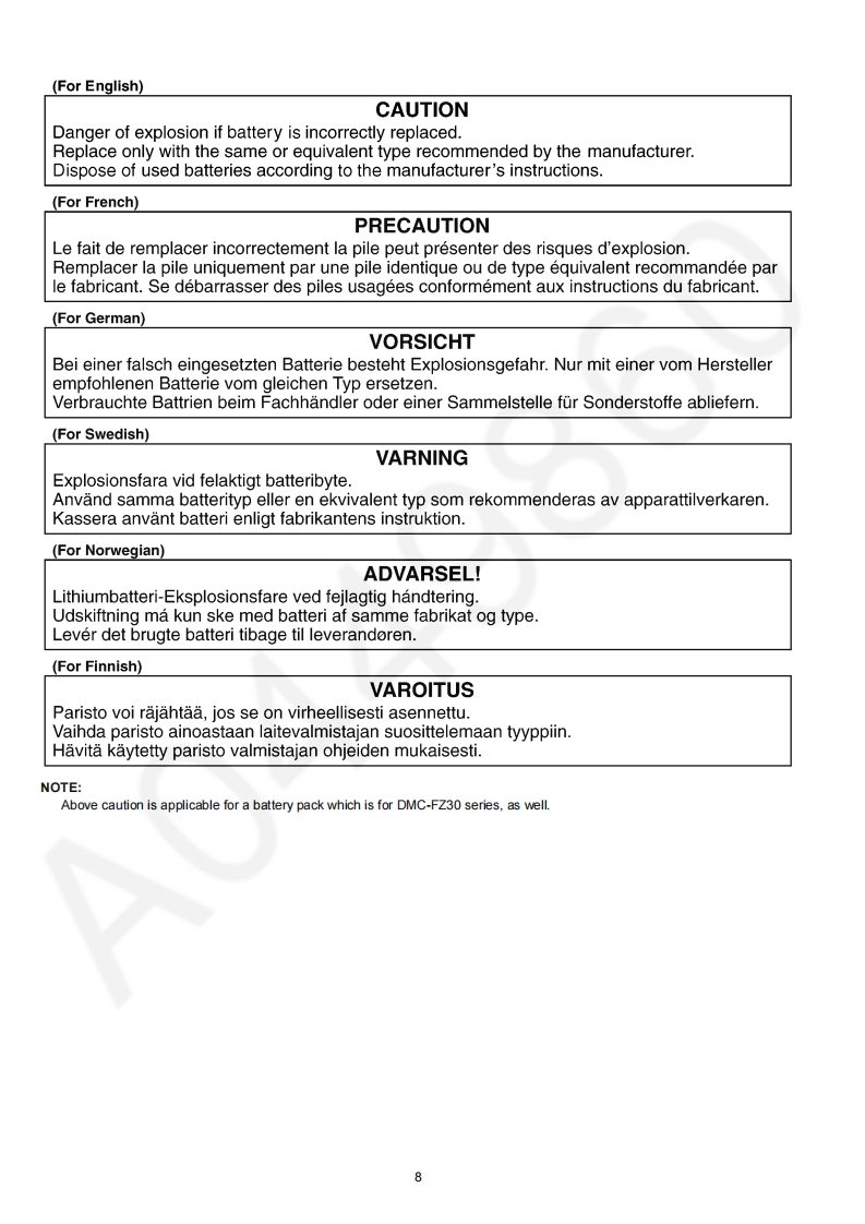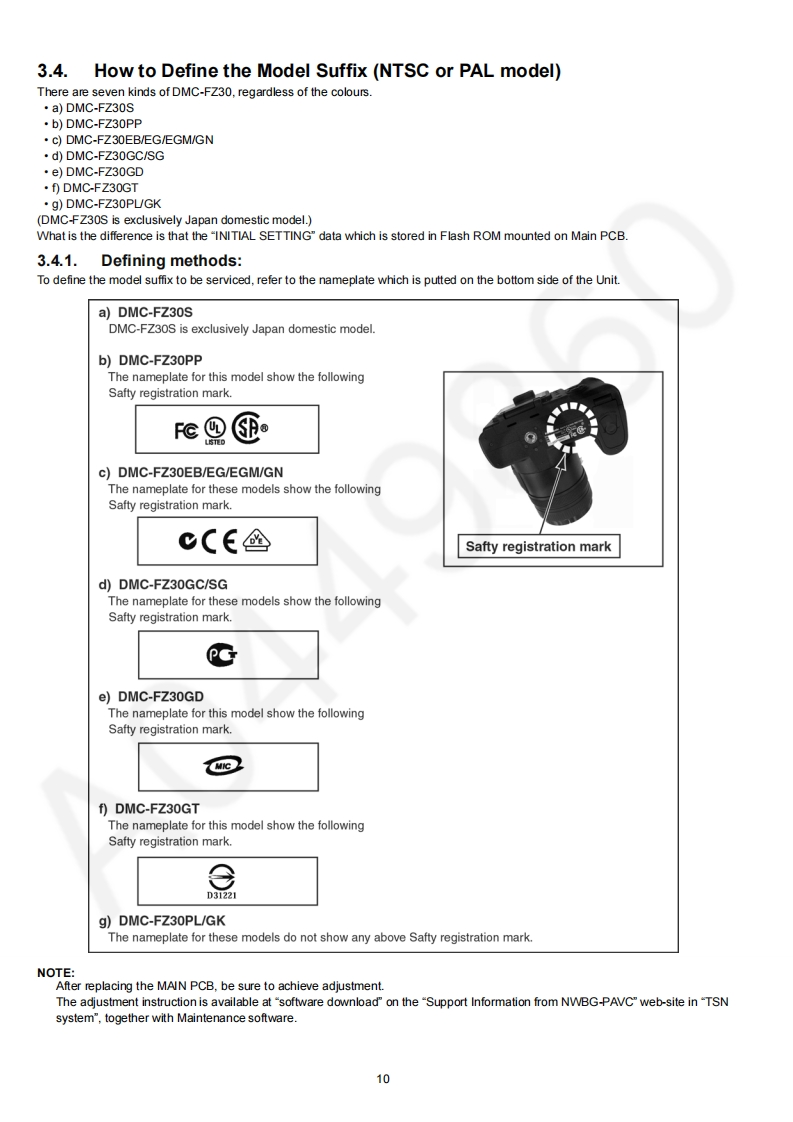 ORDER NO.DSC0508016CEB26Service ManualDigital CameraLUMIXDMC-FZ30PPLEICADMC-FZ30PLDC VARIO-ELMARITDMC-FZ30EBDMC-FZ30EGDMC-FZ30EGMDMC-FZ30GCDMC-FZ30GDDMC-FZ30GKDMC-FZ30GNDMC-FZ30GTDMC-FZ30SGVol.1Colour(S).......Silver Type(K).........Black TypeAWARNINGThis service information is designed for experienced repair technicians only and is not designed for use by the general public.It does not contain wamnings or cautions to advise non-technical individuals of potential dangers in attempting to service a product.Products powered by electricity should be serviced or repaired only by experienced professional technicians.Any attempt to serviceor repair the product or products dealt with in this service information by anyone else could result in serious injury or death.2005 Matsushita Electric Industrial Co.,Ltd.AllPanasonicrights reserved.Unauthorized copying and distribu-tion is a violation of law.