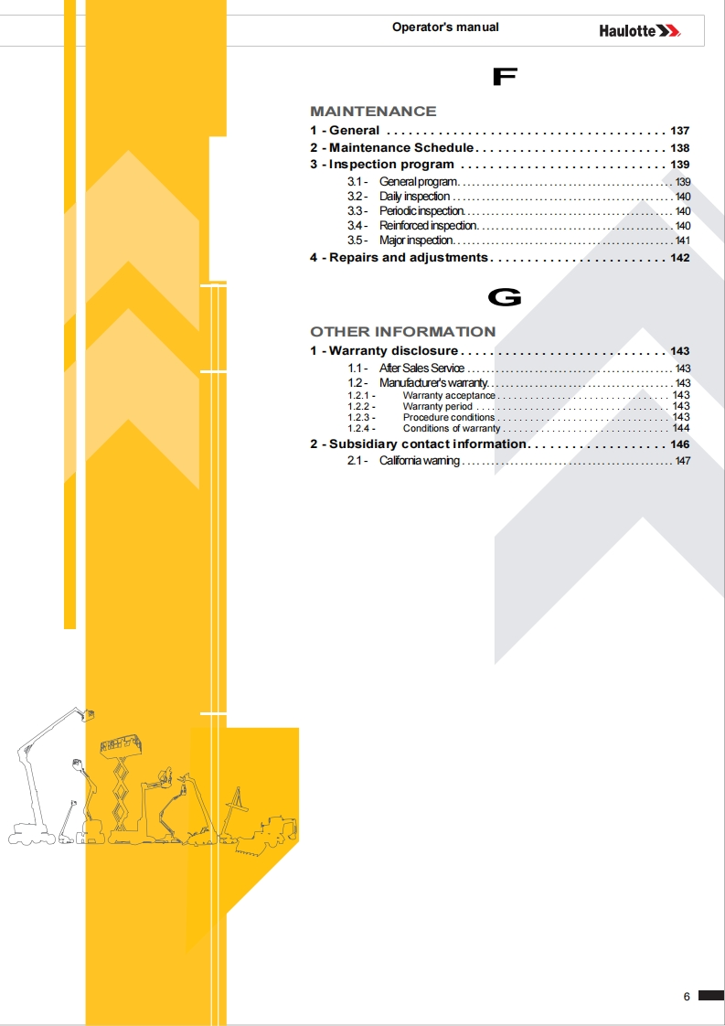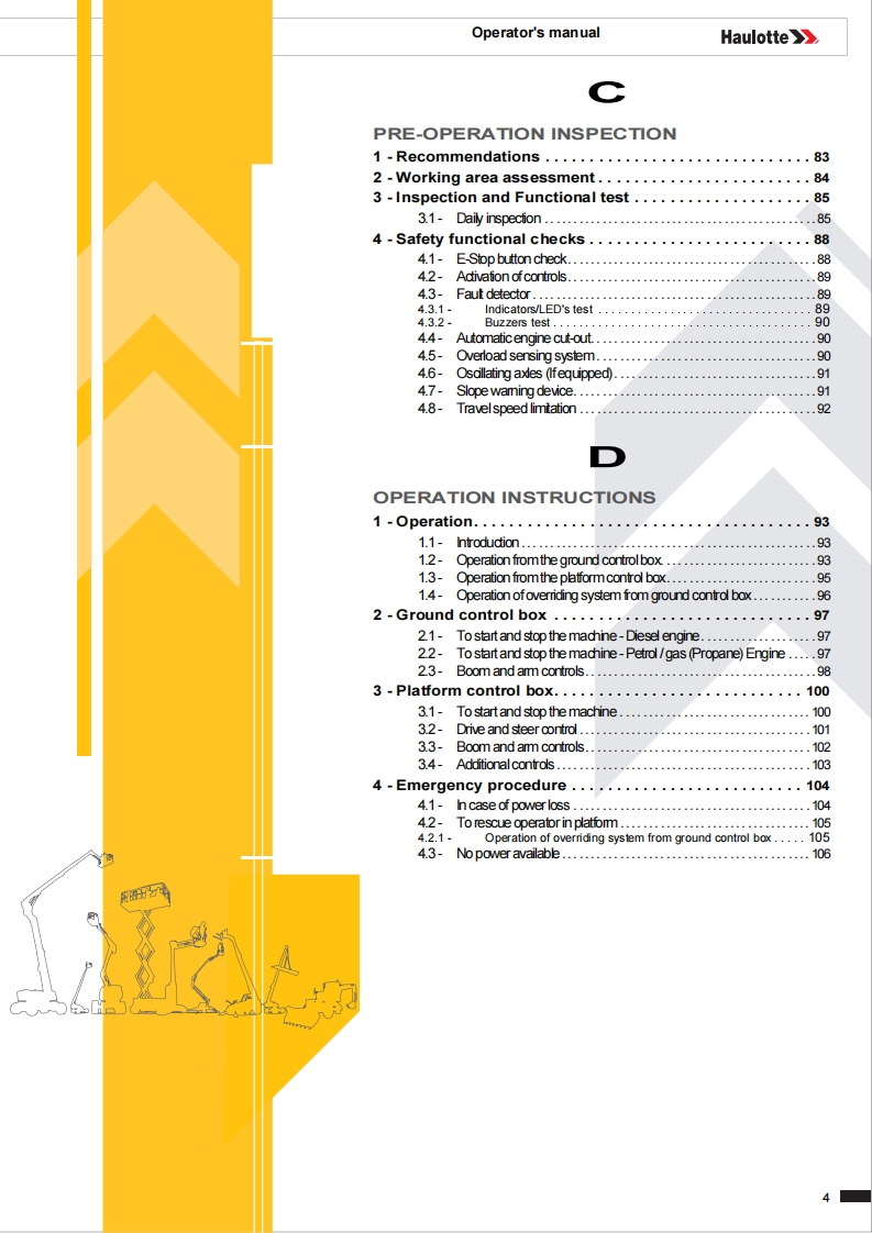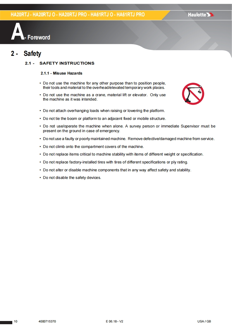 Haulotte-HA20-LEPRO-Operation-Manual操作与维护保养说明书手册找手册网5小时前发布关注私信33.20MB148页042Haulotte-HA20-LEPRO-Operation-Manual操作与维护保养说明书手册此内容为付费资源,请付费后查看¥19¥21黄金会员免费钻石会员免费立即购买您当前未登录!建议登陆后购买,可保存购买订单付费资源 第1页 / 共148页 第2页 / 共148页 第3页 / 共148页 第4页 / 共148页 第5页 / 共148页 第6页 / 共148页 第7页 / 共148页 第8页 / 共148页 第9页 / 共148页 第10页 / 共148页 试读已结束,还剩138页,您可下载完整版后进行离线阅读 THE ENDSNORKEL/HAULOTTE 文本预览 Operator's manualHaulotteOperator's manual957HA20RTJ -HA20RTJ O -HA20RTJ PRO-HA61RTJ O-HA61RTJ PRO4000715370E06.18-V2USA/GB 查看更多 收起部分 喜欢就支持一下吧收藏
