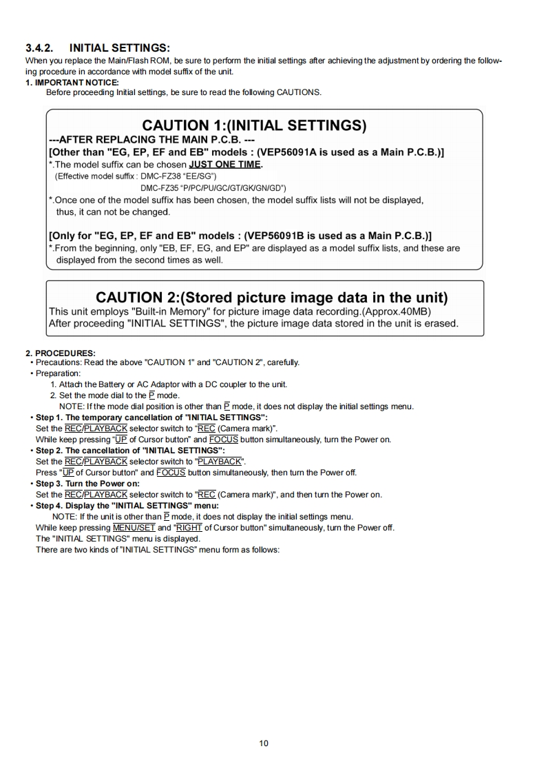 ORDER NO.DSC0908044CEB26Service ManualDigital CameraModeI No.DMC-FZ35PLUMIXOG VAGLMARIT高己!LEICAH▣nIDMC-FZ35PCDMC-FZ35PUDMC-FZ35GCDMC-FZ35GTDMC-FZ35GKDMC-FZ35GNDMC-FZ35GDDMC-FZ38EGDMC-FZ38EPDMC-FZ38EFDMC-FZ38EBDMC-FZ38EEDMC-FZ38SGV0L.1Colours(K).Black Type△NARNINGThis service information is designed for experienced repair technicians only and is not designed for use by the general public.It does not contain warnings or cautions to advise non-technical individuals of potential dangers in attempting to service a product.Products powered by electricity should be serviced or repaired only by experienced professional technicians.Any attempt to serviceor repair the product or products dealt with in this service information by anyone else could result in serious injury or death.Panasonic Corporation 2009.PanasonicUnauthorized copying and distribution is a violationof law.