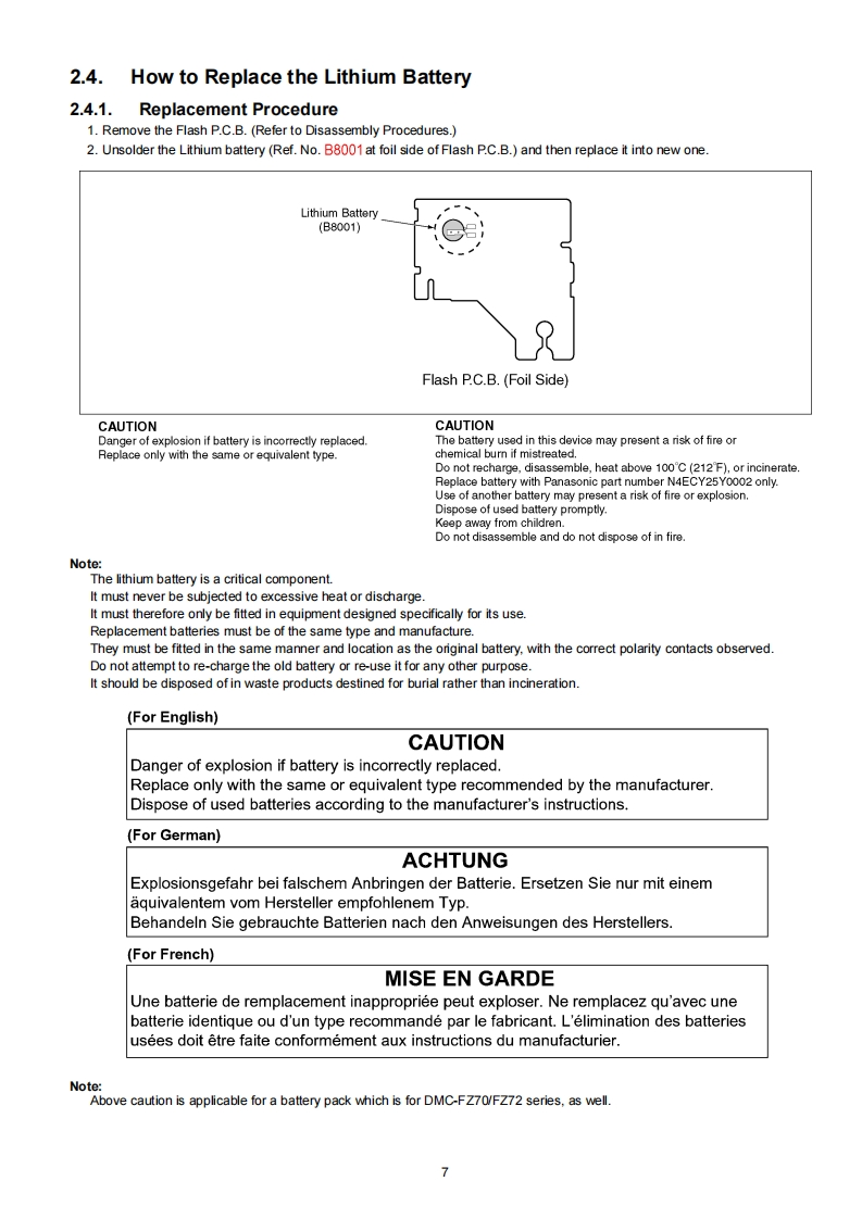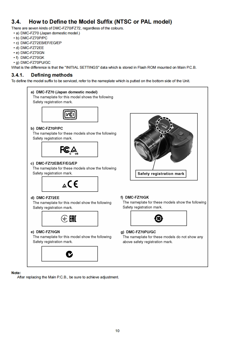 ORDER NO.DSC1308025CEB26Service ManualDigital CameraModel No.DMC-FZ70PLUMIX是▣8YDMC-FZ70PCAVCHDH▣mI3DDMC-FZ7OPUDMC-FZ70GCDMC-FZ70GKDMC-FZ70GNDMC-FZ72EBDMC-FZ72EEDMC-FZ72EFDMC-FZ72EGDMC-FZ72EPColour(K)..Black TypeAWARNINGThis service information is designed for experienced repair technicians only and is not designed for use by the general public.It does not contain warnings or cautions to advise non-technical individuals of potential dangers in attempting to service a product.Products powered by electricity should be serviced or repaired only by experienced professional technicians.Any attempt to serviceor repair the product or products dealt with in this service information by anyone else could result in serious injury or death.Panasonic Corporation 2013.PanasonicUnauthorized copying and distributionis a violationof law.