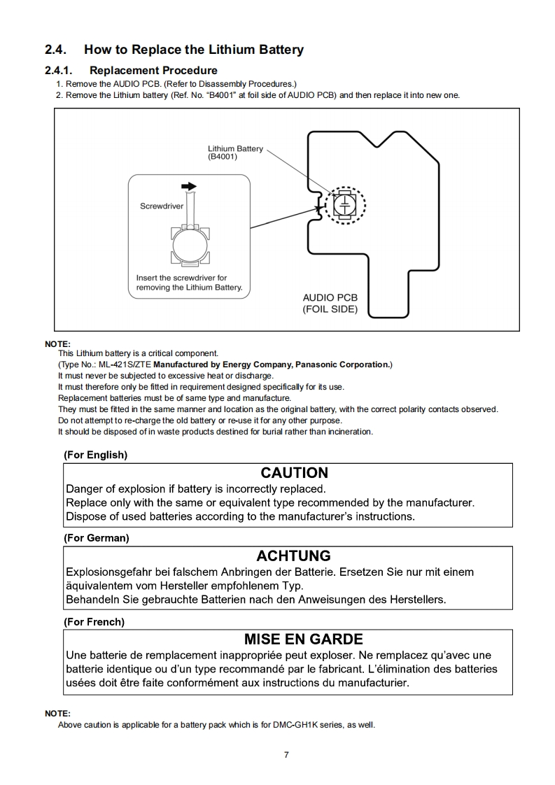 ORDER NO.DSC0905029CEB26Service ManualDigital Camera/Lens KitLUMIXModeI No.DMC-GH1KPPG酷DMC-GH1KEBHDMICRODMC-GH1KECHm叫VIEA LinKDMC-GH1KEGLUMIXDMC-GH1KGCGH1DMC-GH1KGHDMC-GH1KGKDMC-GH1KGNDMC-GH1KGTACHDVol.1Colour(K)..........BIack Type(N)...........Gold Type (only PP/EC/EG/GC)(R)...........Red Type (only PP/EB/EC/EG/GC)△NARNINGThis service information is designed for experienced repair technicians only and is not designed for use by the general publicIt does not contain warnings or cautions to advise non-technical individuals of potential dangers in attempting to service a product.Products powered by electricity should be serviced or repaired only by experienced professional technicians.Any attempt to serviceor repair the product or products dealt with in this service information by anyone else could result in serious injury or death.Panasonic Corporation 2009.Unauthorized copy-Panasonicing and distribution is a violation of law.