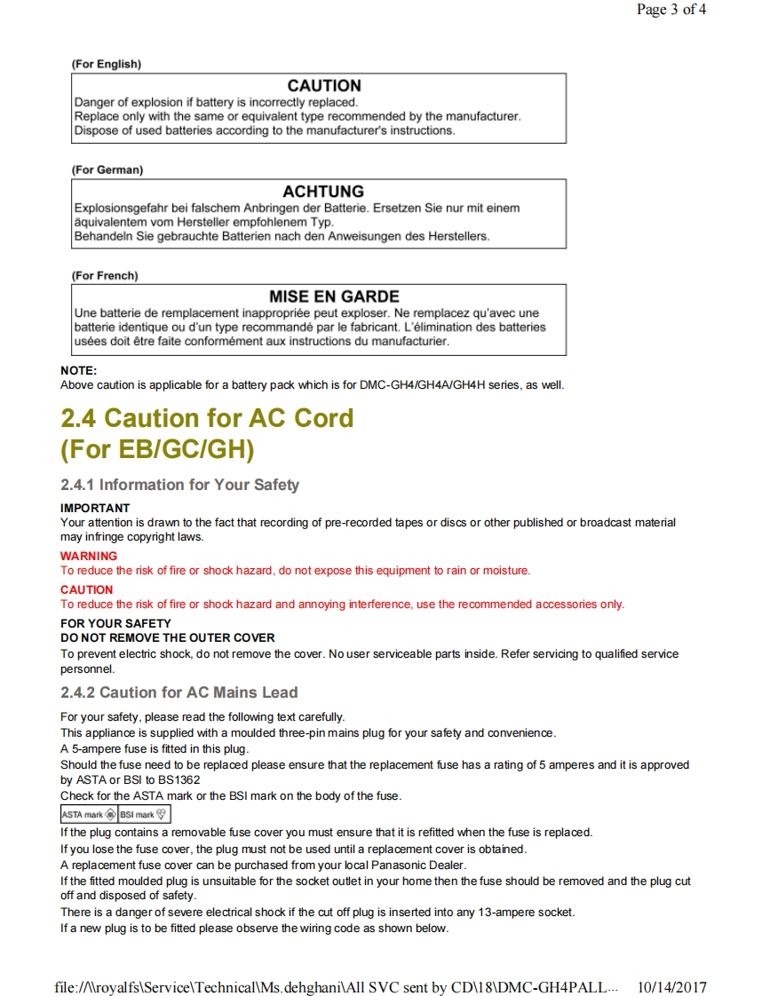 Page 1 of 2PanasonicORDER NO.DSC1404007CEB26Service ManuaDigital Camera/Body/Lens KitModel No.DMC-GH4PDMC-GH4PCDMC-GH4EBDMC-GH4ECDMC-GH4EEDMC-GH4EFDMC-GH4EGDMC-GH4GCDMC-GH4GDDMC-GH4GHDMC-GH4GKDMC-GH4GNDMC-GH4GTDMC-GH4AEGDMC-GH4AGCDMC-GH4AGHDMC-GH4AGNDMC-GH4HPUDMC-GH4HEBDMC-GH4HECDMC-GH4HEEDMC-GH4HEFDMC-GH4HEGColourfile:/AroyalfsServiceTechnicalMs.dehghaniAll SVC sent by CD18DMC-GH4PALL...10/14/2017