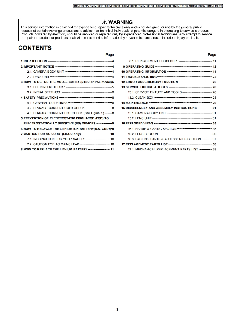 ORDER NO.DSC0710038CEB26Service ManualDigital Camera/Lens KitLUMIXModel No.DMC-L10KPPLEICAD VARIO-ELMAR州品DMC-L10KELUMIXDMC-L10KEBDMC-L10KEGDMC-L10KGCDMC-L10KGDDMC-L10KGKDMC-L10KGNDMC-L10KGTVol.1Colour(K)....BIack TypePanasonic2007 Matsushita Electric Industrial Co.,Ltd.Allrights reserved.Unauthorizedcopying anddistribution is a violation of law.