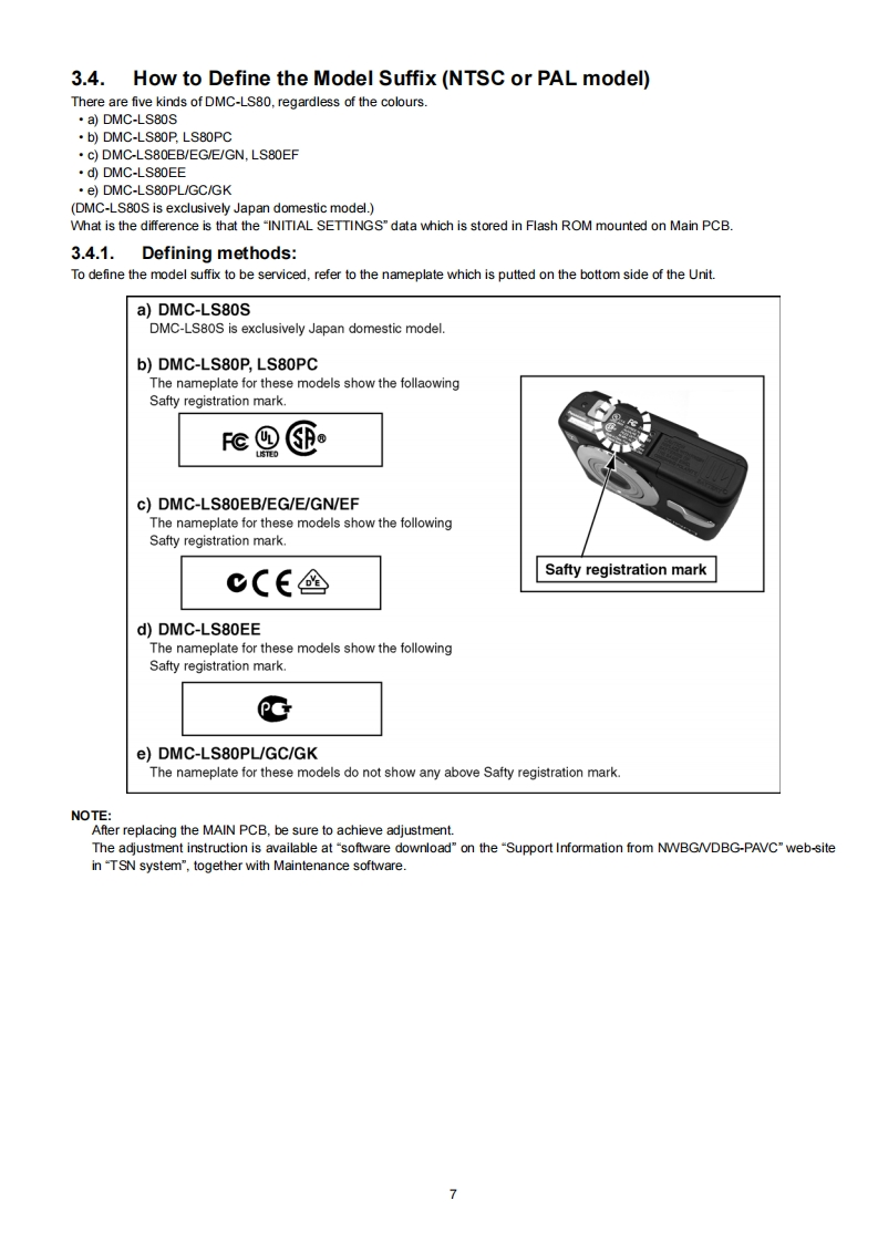 ORDER NO.DSC0802001CEB26Service ManuaDigital CameraModel No.DMC-LS80PLUMIX名DMC-LS80PCDMC-LS80PLDMC-LS80EDMC-LS80EBDMC-LS80EEDMC-LS80EFDMC-LS80EGDMC-LS80GCDMC-LS80GKDMC-LS80GNVol.1Colour(S).............Silver Type (except DMC-LS80EF)(K)............Black Type (except DMC-LS80EB/GK/GN)(P).............Pink Type (except DMC-LS80EF/PC/GC/GN)△NARNINGThis service information is designed for experienced repair technicians only and is not designed for use by the general public.It does not contain warnings or cautions to advise non-technical individuals of potential dangers in attempting to service a product.Products powered by electricity should be serviced or repaired only by experienced professional technicians.Any attempt to serviceor repair the product or products dealt with in this service information by anyone else could result in serous injury or death2008 Matsushita Electric Industrial Co.,Ltd.AllPanasonicrights reserved.Unauthorized copying and distribu-tion is a violation of law.