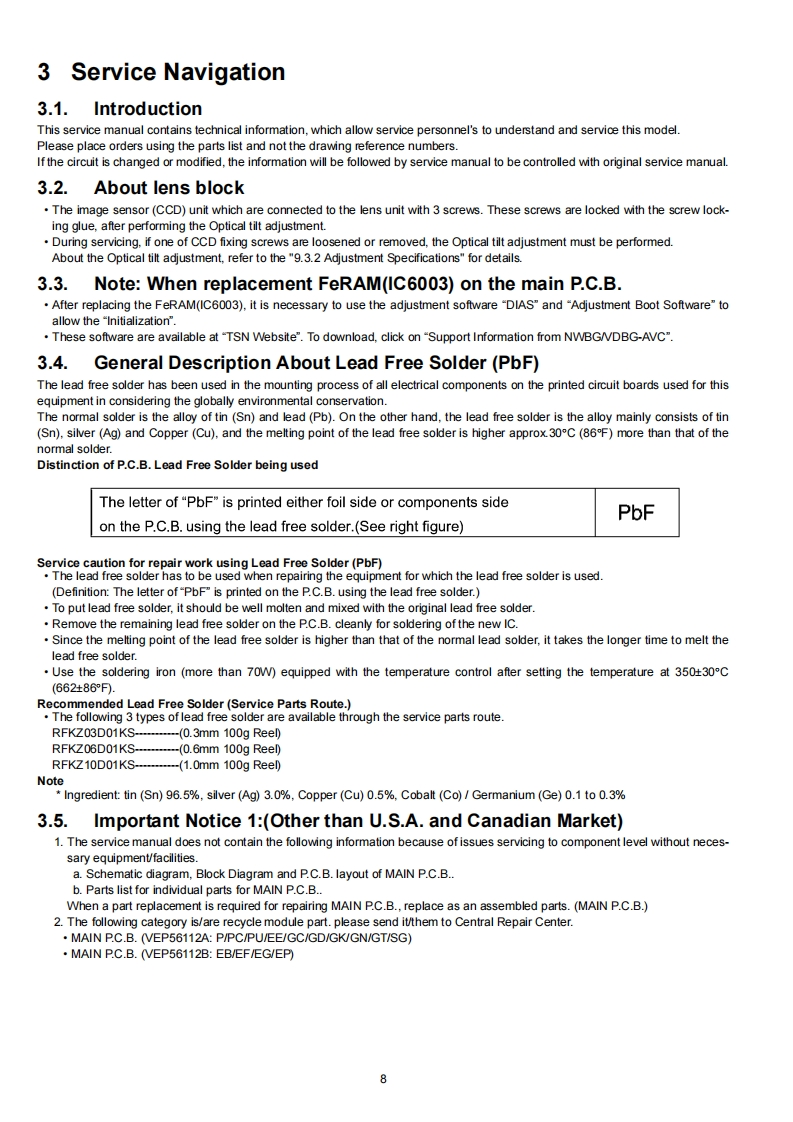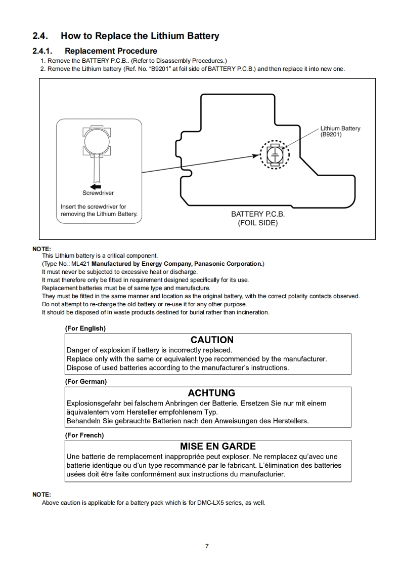ORDER NO.DSC1008049CEB26Service ManualDigital CameraLUMIXModel No.DMC-LX5P彩H▣mIDMC-LX5PCDMC-LX5PUDMC-LX5EBDMC-LX5EEDMC-LX5EFDMC-LX5EGDMC-LX5EPDMC-LX5GCDMC-LX5GDDMC-LX5GKDMC-LX5GNDMC-LX5GTDMC-LX5SGVol.1Colour(K).BIack Type(W)..........White Type (only P/GC/GD/GK/GN/GT)AWARNINGThis service information is designed for experienced repair technicians only and is not designed for use by the general public.It does not contain warnings or cautions to advise non-technical individuals of potential dangers in attempting to service a product.Products powered by electricity should be serviced or repaired only by experienced professional technicians.Any attempt to serviceor repair the product or products dealt with in this service information by anyone else could result in serious injury or death.Panasonic Corporation 2010 Unauthorized copy-Panasonicing and distribution is a violation of law.