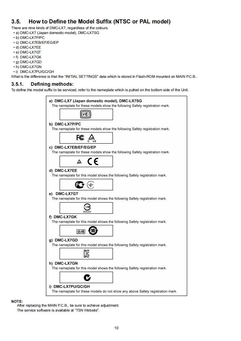 ORDER NO.DSC1208031CEB26Service ManuaDigital CameraLUMIXModel No.DMC-LX7P2NANODMC-LX7PCSURFACECOATINGDMC-LX7PUDMC-LX7EBDMC-LX7EEDMC-LX7EFDMC-LX7EGDMC-LX7EPDMC-LX7GCDMC-LX7GDDMC-LX7GHDMC-LX7GKDMC-LX7GNDMC-LX7GTDMC-LX7SGColour(K)..Black Type(W)..........White Type(except PU/EB/EE/EF/EG/EP)AWARNINGThis service information is designed for experienced repair technicians only and is not designed for use by the general public.It does not contain warnings or cautions to advise non-technical individuals of potential dangers in attempting to service a product.Products powered by electricity should be serviced or repaired only by experienced professional technicians.Any attempt to serviceor repair the product or products dealt with in this service information by anyone else could result in serious injury or deathPanasonic Corporation 2012 Unauthorized copy-Panasonicing and distribution is a violation of law.