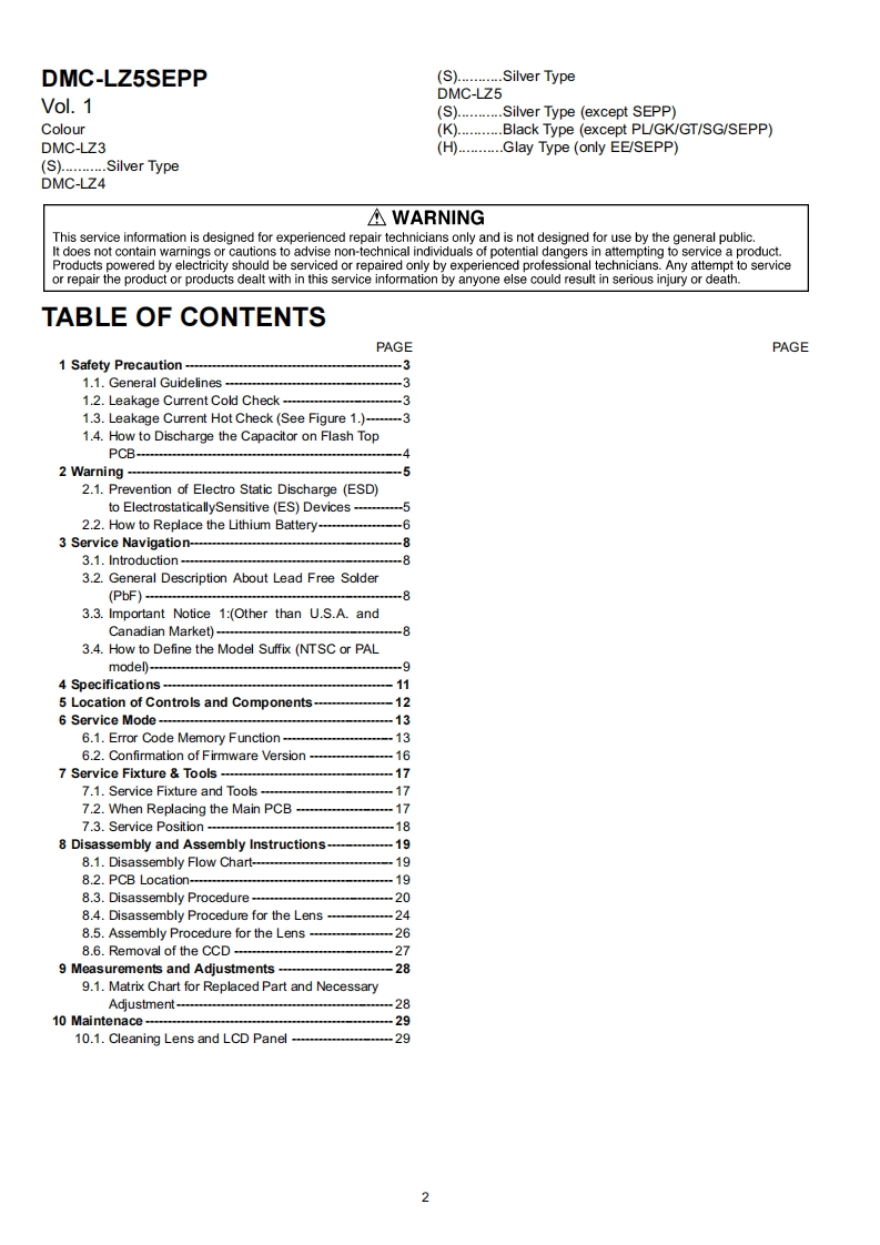 ORDER NO.DSC0602003CEB26Service ManuaDigital CameraDMC-LZ3PPLUMIXDMC-LZ3PLDMC-LZ3EBDMC-LZ3EEDMC-LZ3EFDMC-LZ3EGDMC-LZ3EGMDMC-LZ3GCDMC-LZ3GKDMC-LZ3GNDMC-LZ3GTDMC-LZ4PPDMC-LZ4EBDMC-LZ4EGDMC-LZ5PPDMC-LZ5PLDMC-LZ5EBDMC-LZ5EEDMC-LZ5EFDMC-LZ5EGDMC-LZ5EGMDMC-LZ5GCDMC-LZ5GKDMC-LZ5GNDMC-LZ5GTDMC-LZ5SG2006 Matsushita Electric Industrial Co.,Ltd.AllPanasonicrights reserved.Unauthorized copying and distribu-tion is a violation of law.