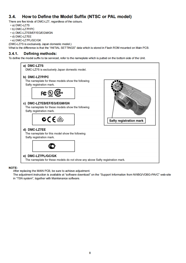 ORDER NO.DSC0701005CEB26Service ManualDigital CameraLUMIXDMC-LZ7P名DMC-LZ7PCDMC-LZ7PLDMC-LZ7EBDMC-LZ7EEDMC-LZ7EFDMC-LZ7EGDMC-LZ7EGMDMC-LZ7GCDMC-LZ7GKDMC-LZ7GNVol.1Colour(S).......Silver Type(K)..........Black Type(except PL/EB/GC/GK/GN)△NARNINGThis service information is designed for experienced repair technicians only and is not designed for use by the general public.It does not contain warnings or cautions to advise non-technical individuals of potential dangers in attempting to service a product.Products powered by electricity should be serviced or repaired only by experienced professional technicians.Any attempt to serviceor repair the product or products dealt with in this service information by anyone else could result in serious injury or death.2007 Matsushita Electric Industrial Co..Ltd.AllPanasonicrights reserved.Unauthorized copying and distribu-tion is a violation of law.