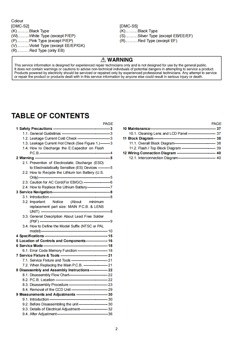 ORDER NO.DSC1202001CEB26Service ManuaDigital CameraLUMIXModel No.DMC-S2PDMC-S2PUDMC-S2EB0DMC-S2EEDMC-S2EFDMC-S2EGDMC-S2EPDMC-S2GADMC-S2GCDMC-S2GFDMC-S2GKDMC-S2GNDMC-S2GTDMC-S5PUDMC-S5EBDMC-S5EEDMC-S5EFDMC-S5EGDMC-S5GADMC-S5GFDMC-S5GNPanasonic Corporation 2012 Unauthorized copy-Panasonicing and distribution is a violation of law.