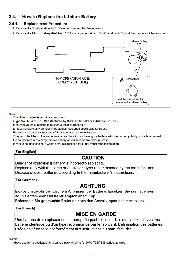 ORDER NO.DSC0803021CEB26Service ManualDigital CameraModeI No.DMC-TZ5PLUMIX品DMC-TZ5PCDMC-TZ5PLDMC-TZ5PRDMC-TZ5EBDMC-TZ5EEDMC-TZ5EFDMC-TZ5EGDMC-TZ5EDMC-TZ5SGDMC-TZ15GCDMC-TZ15GDDMC-TZ15GKDMC-TZ15GNDMC-TZ15GTDMC-TZ15GJVOL.1Colours(S).................Silver Type (except PR/GD)(K)Back Type(A)...............Blue Type (only DMC-TZ5P/PC/PU/PR/EE/EG/E)(TA)......Dark Brown Type (only DMC-TZ5EF/EG/E)Brown Type (only DMC-TZ5SG,DMC-TZ15GC/GK/GJ)2008 Matsushita Electric Industrial Co..Ltd.AllPanasonicrights reserved.Unauthorized copying and distribu-tion is a violation of law.