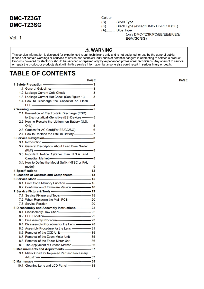 ORDER NO.DSC0703017CEB26Service ManuaDigital CameraLUMIXDMC-TZ2PLEICA DC VARIO-ELMARDMC-TZ2PCDMC-TZ2PLDMC-TZ2EBDMC-TZ2EEDMC-TZ2EFDMC-TZ2EGDMC-TZ2EGMDMC-TZ2GCDMC-TZ2GDDMC-TZ2GKDMC-TZ2GNDMC-TZ2GTDMC-TZ3PDMC-TZ3PCDMC-TZ3PLDMC-TZ3EBDMC-TZ3EEDMC-TZ3EFDMC-TZ3EGDMC-TZ3EGMDMC-TZ3GCDMC-TZ3GDDMC-TZ3GKDMC-TZ3GN2007 Matsushita Electric Industrial Co.,Ltd.AllPanasonicrights reserved.Unauthorized copying and distribu-tion is a violation of law.